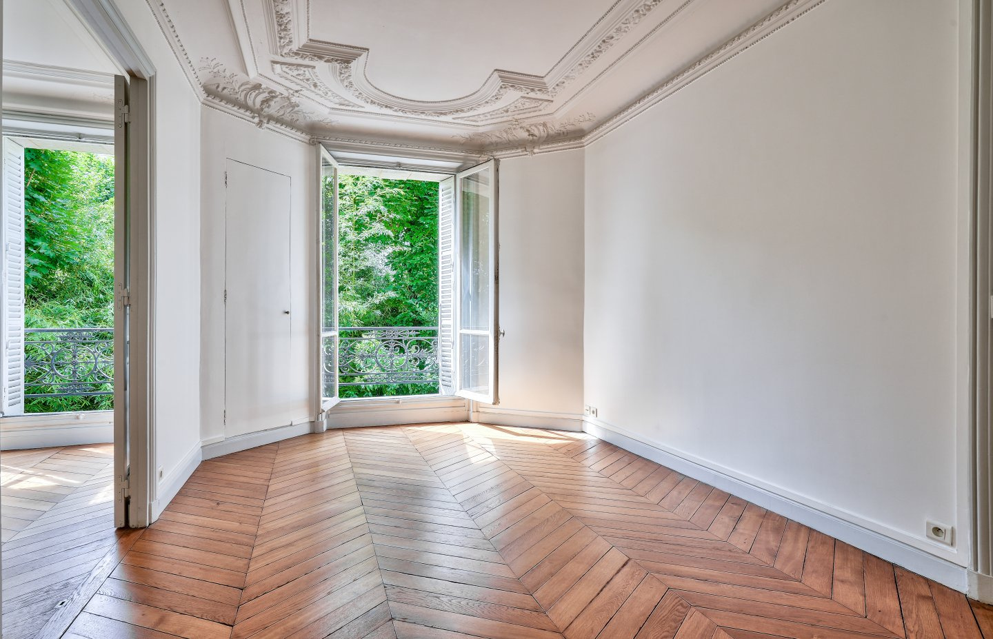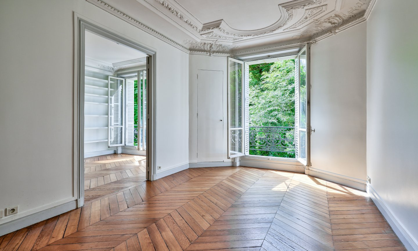 Au 1er étage d’un bel immeuble Haussmannien avec ascenseur, un appartement sur cour arborée au calme absolu et en très bon état de 65,67m² au sol (64,42m² Carrez).