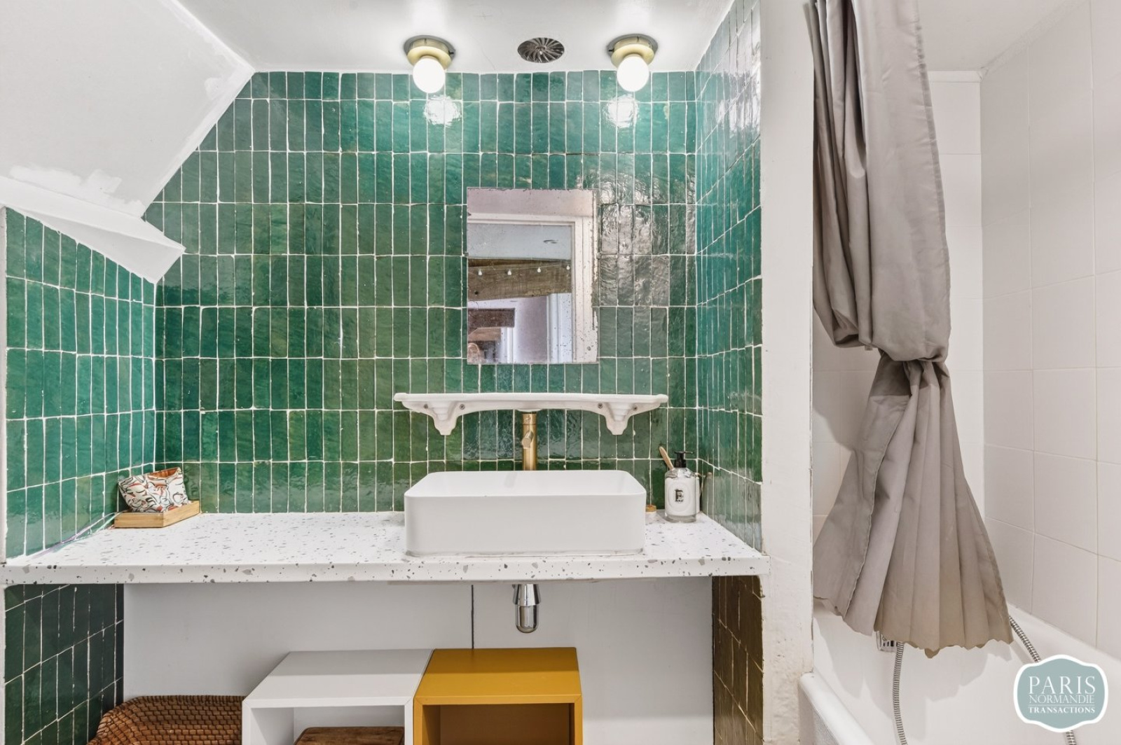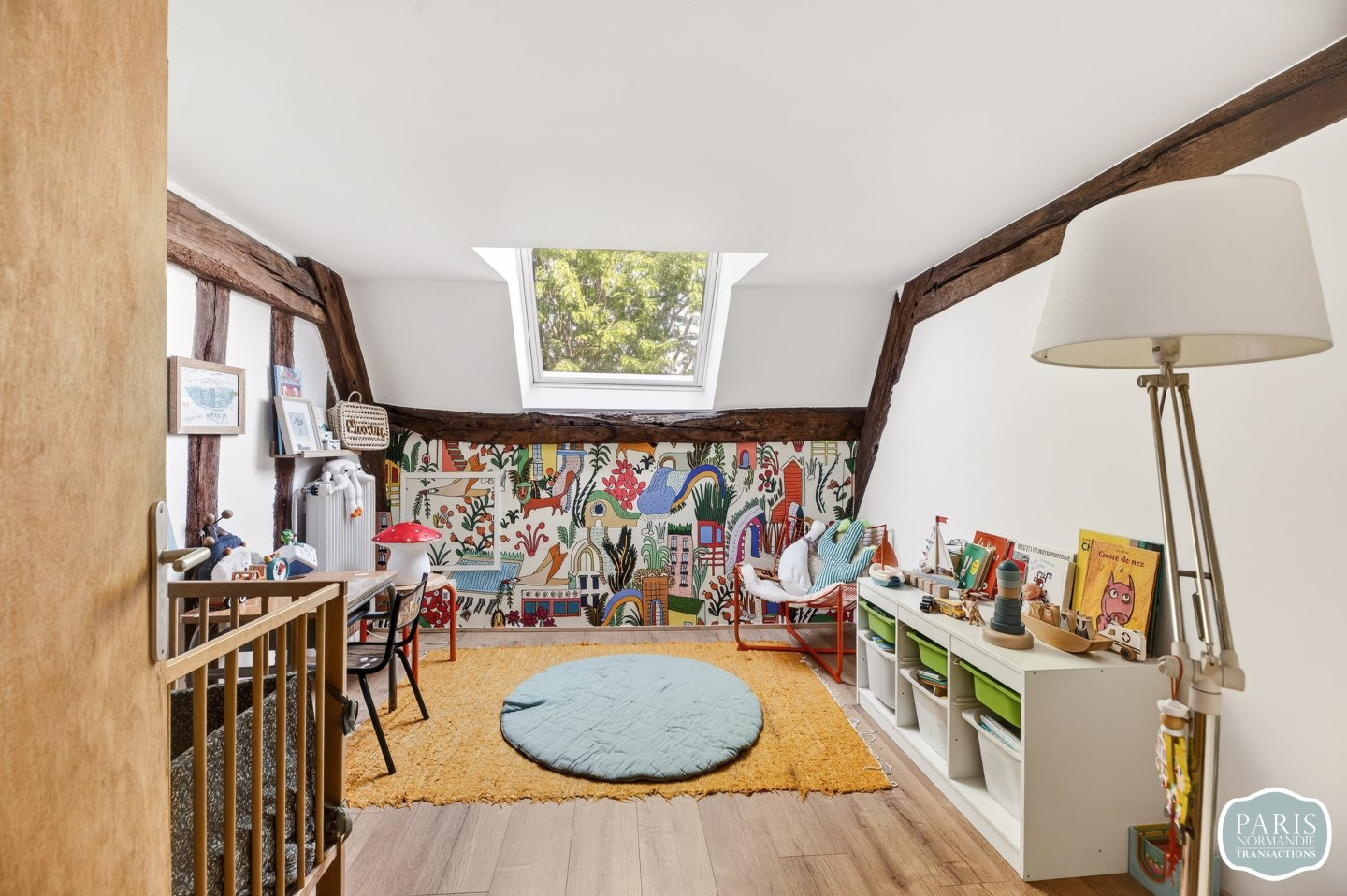 A l’étage, un ancien pigeonnier de 24m² aménagé en salle de jeux pouvant tout à fait accueillir une chambre avec une vue imprenable sur la Seine et le jardin.