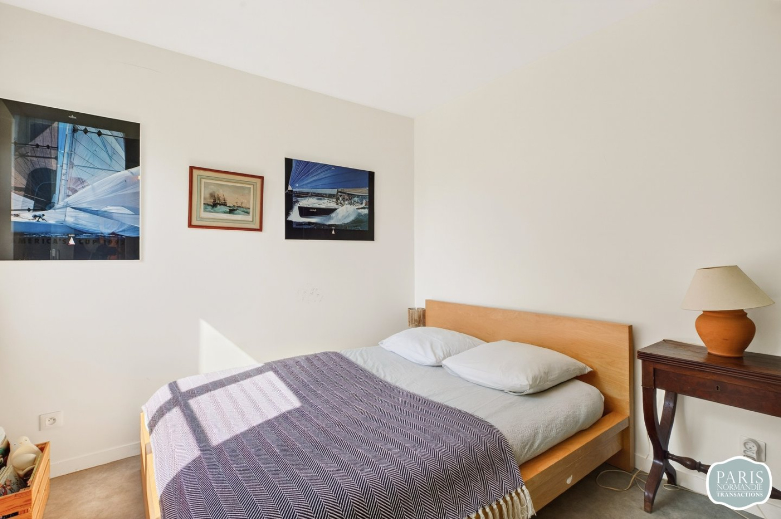 Elle se compose d’une entrée avec dressing, d’une grande pièce à vivre de 63m² comprenant un salon avec cheminée, un espace salle à manger, une cuisine ouverte traversante, le tout donnant accès direct côté Seine ainsi qu’à une terrasse de 45m² côté jardin.