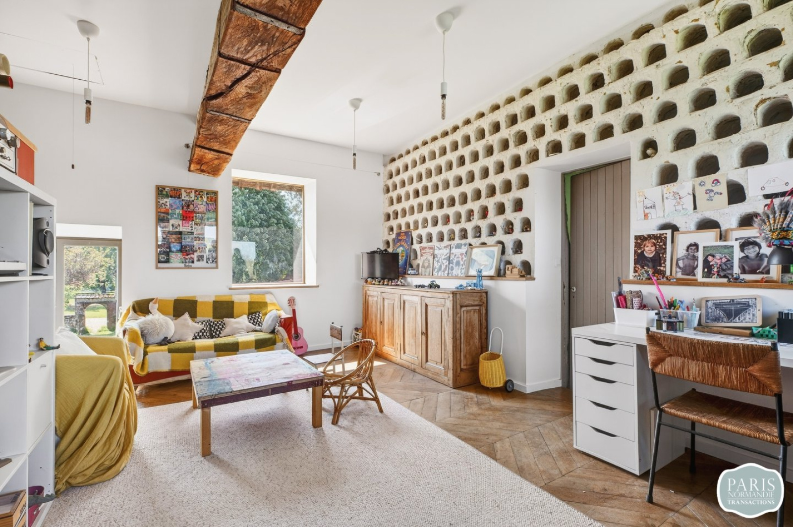 Idéalement située sur les berges de la rive gauche de la Seine à seulement une heure de Paris et de Deauville, cette propriété, ancien moustier de l’abbaye de Bonport transformé en corps de ferme puis en habitation d’une surface habitable de 340m².