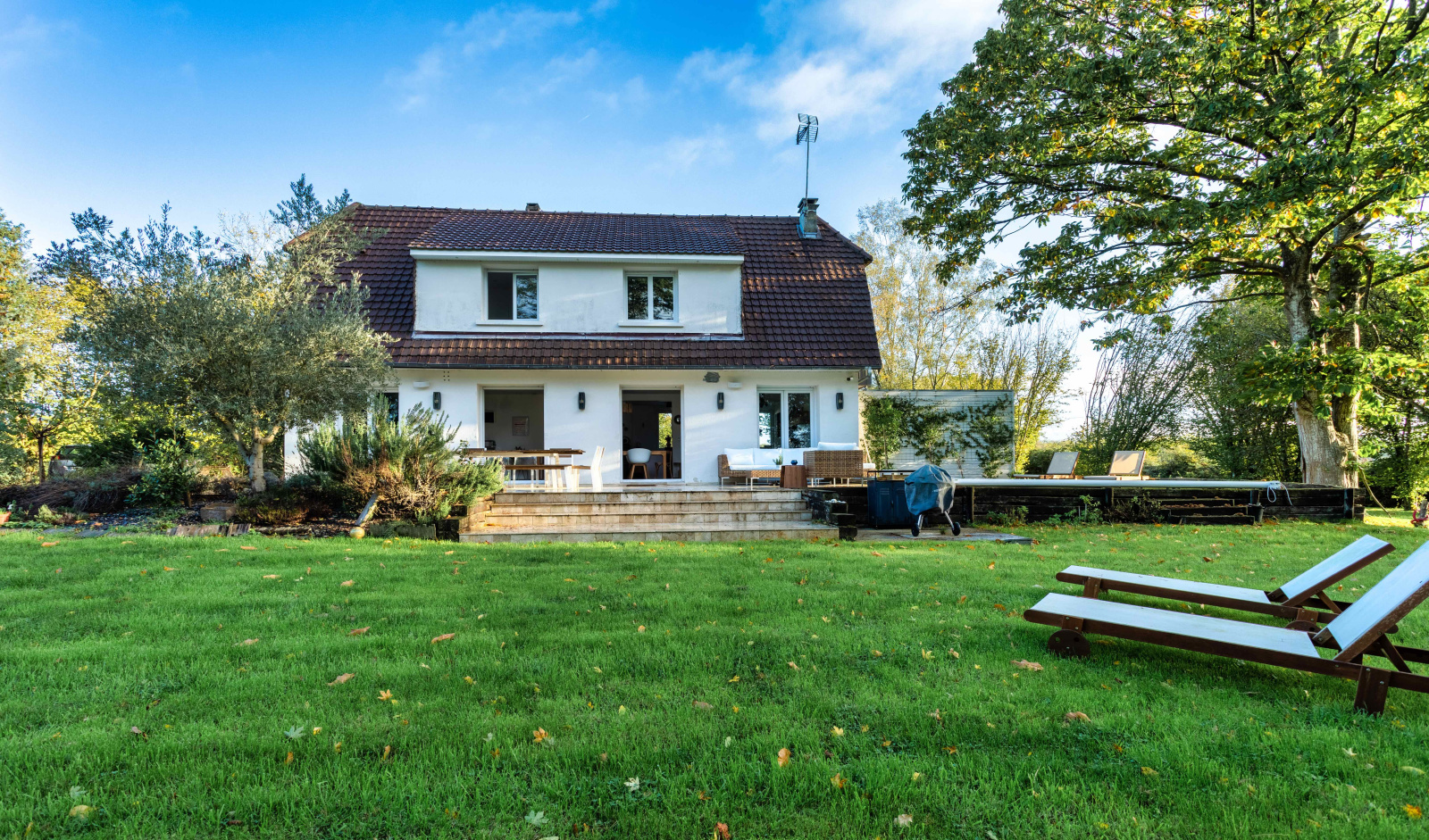 Deauville (14800)Exclusivité - Heuland - A 15 mn de Villers-sur-Mer et Deauville, une maison parfaitement rénovée et ensoleillée de 114m² habitables sur un terrain plat et arboré de 5640 m² entièrement éclairé, au calme absolu et sans aucun vis-à-vis .