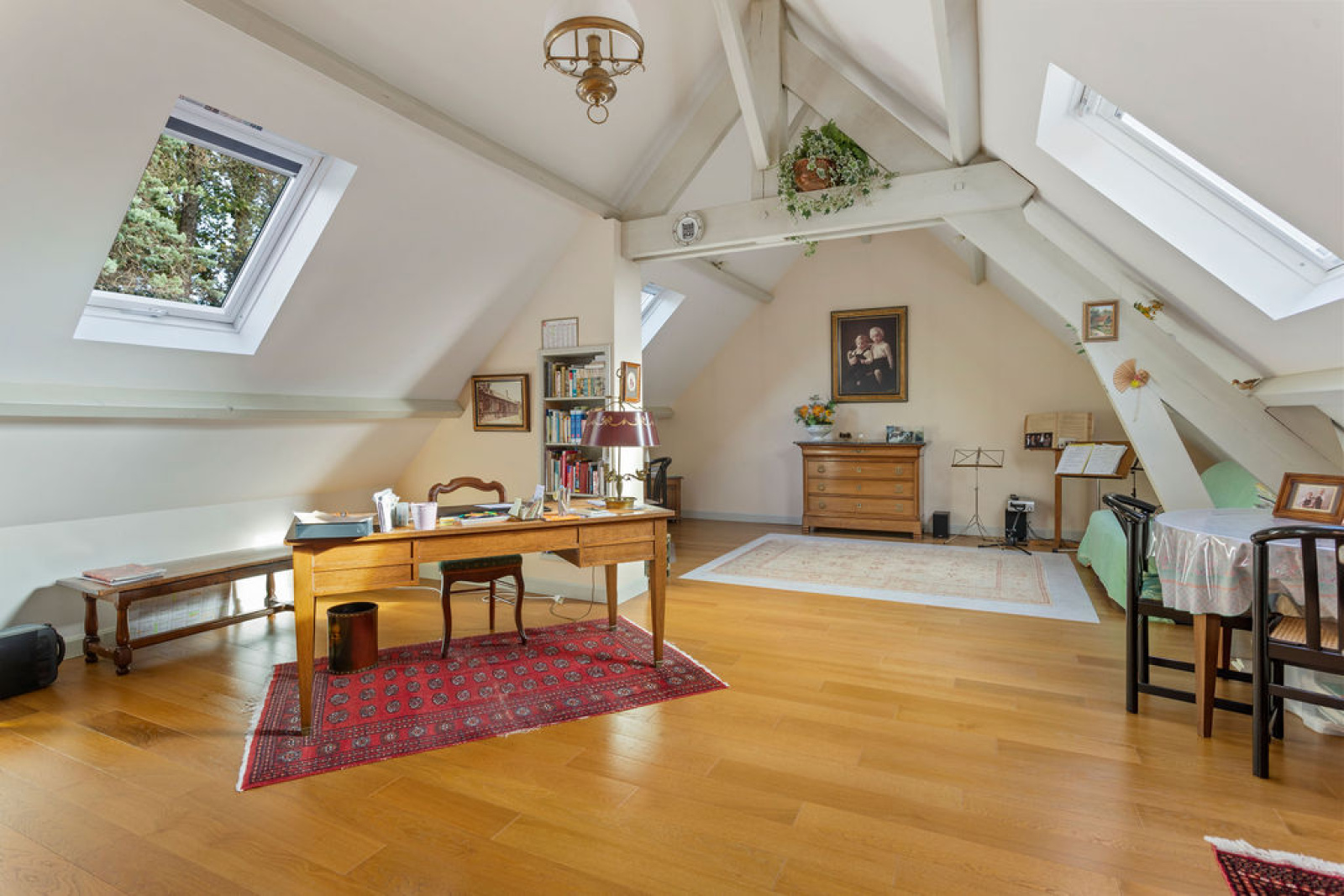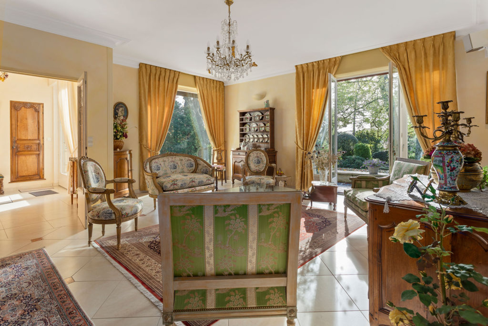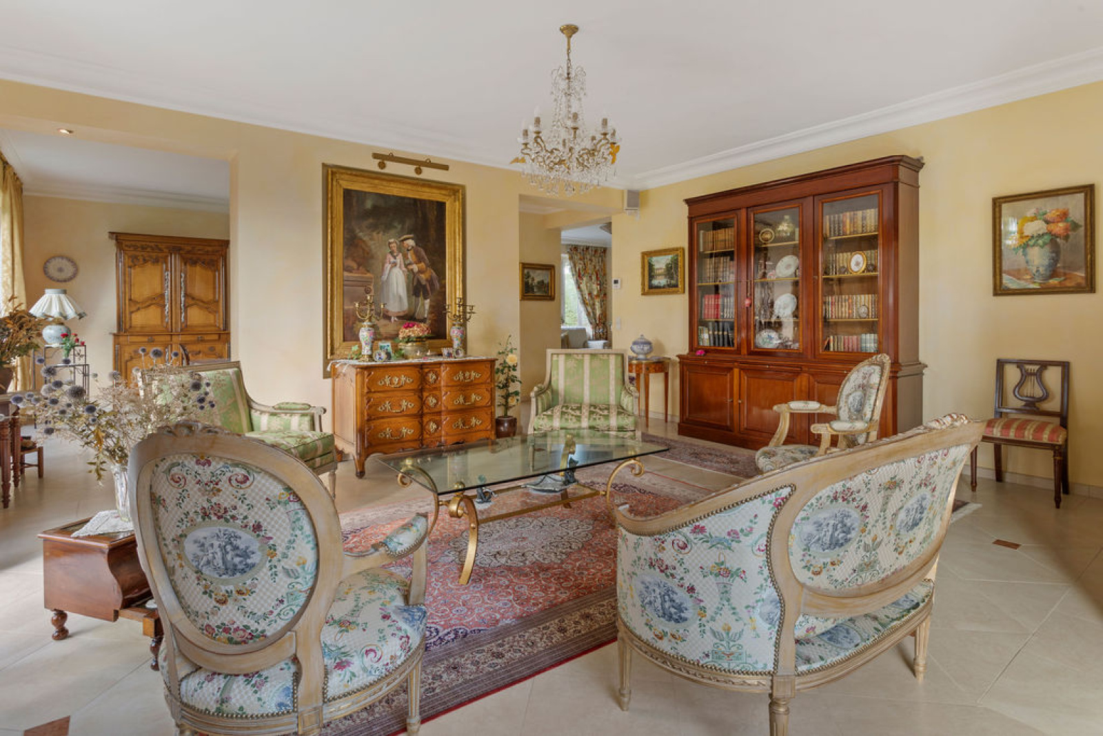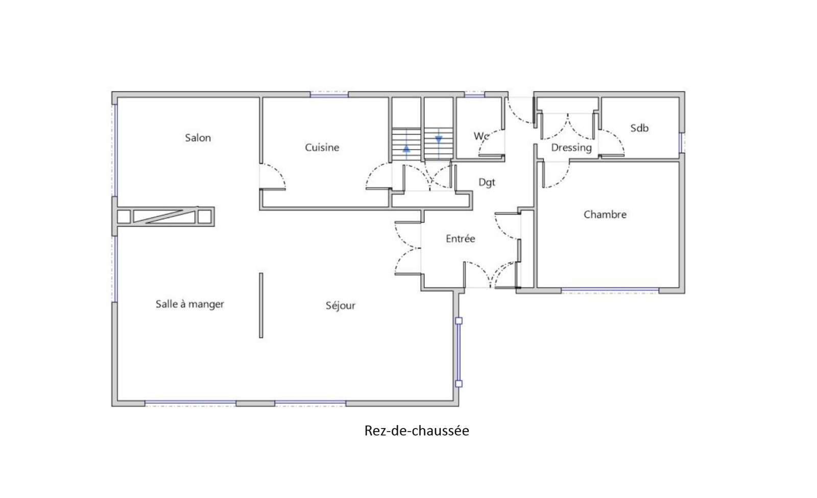 Elle se compose d’une entrée, de grands espaces de réception (salon, salle à manger, petit salon, l’ensemble donnant sur une grande terrasse de plain-pied), des WC invités, d’une grande cuisine dinatoire et équipée, d’une grande chambre avec dressing et salle de bains.
