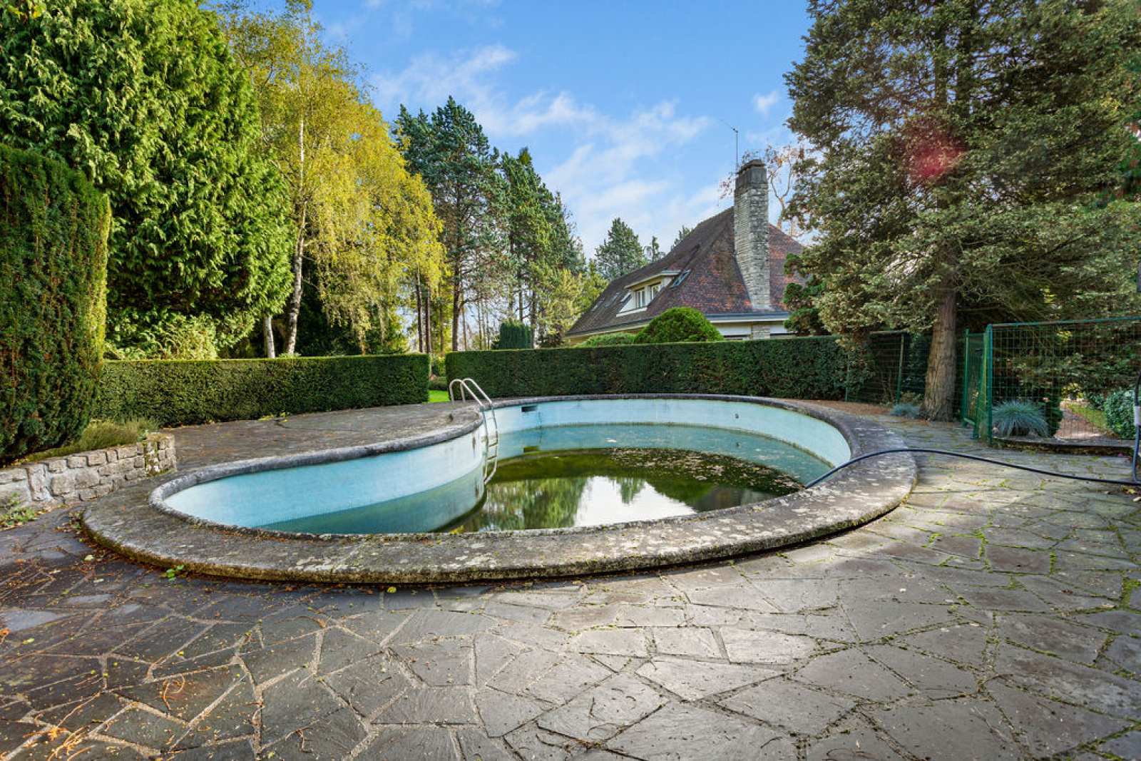 Dans le jardin, une piscine à rénover et un deuxième garage pouvant servir de pool house complètent ce bien unique à la vente.