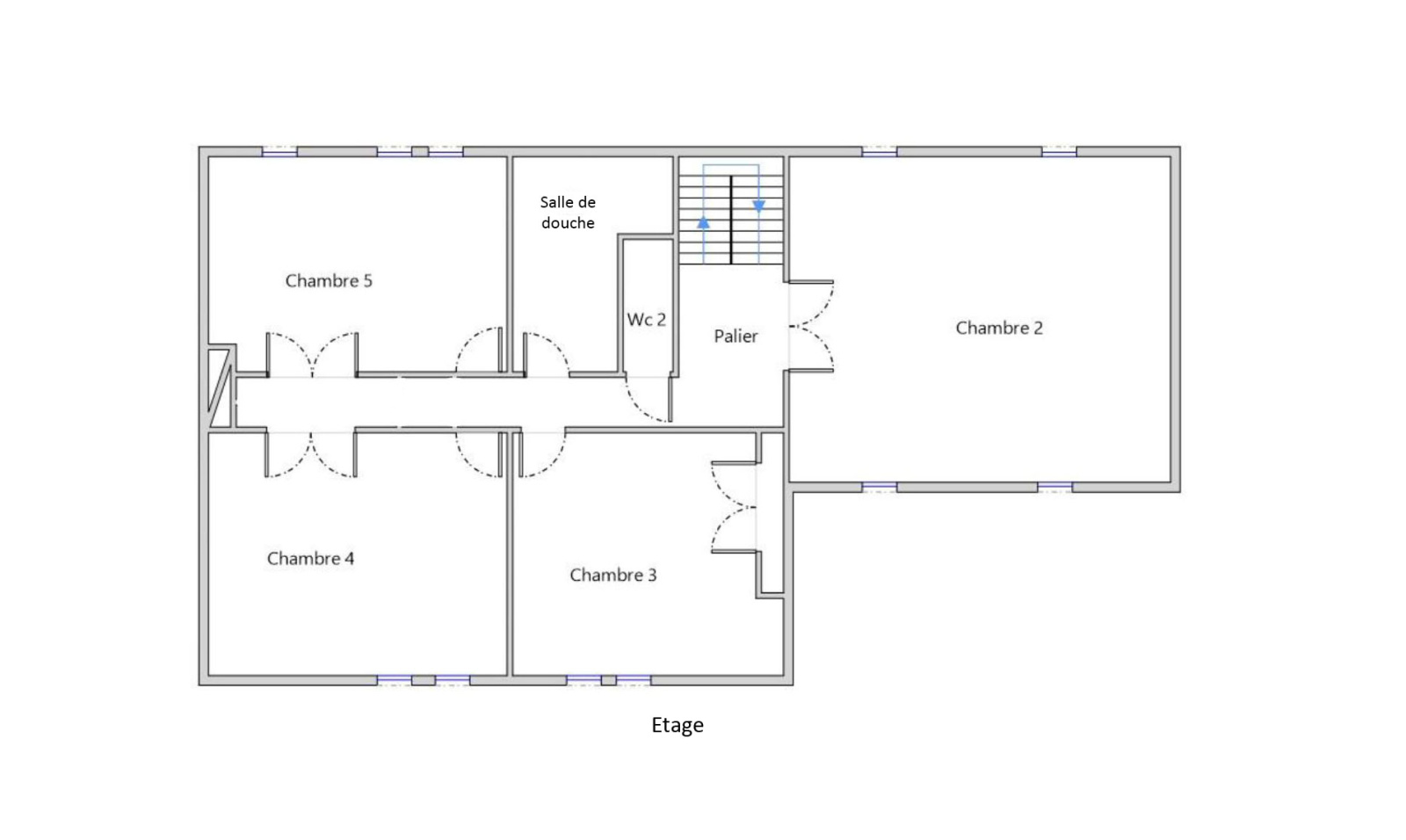 A l’étage, 4 grandes chambres avec chacune son balcon, une salle de douche et des WC séparés.