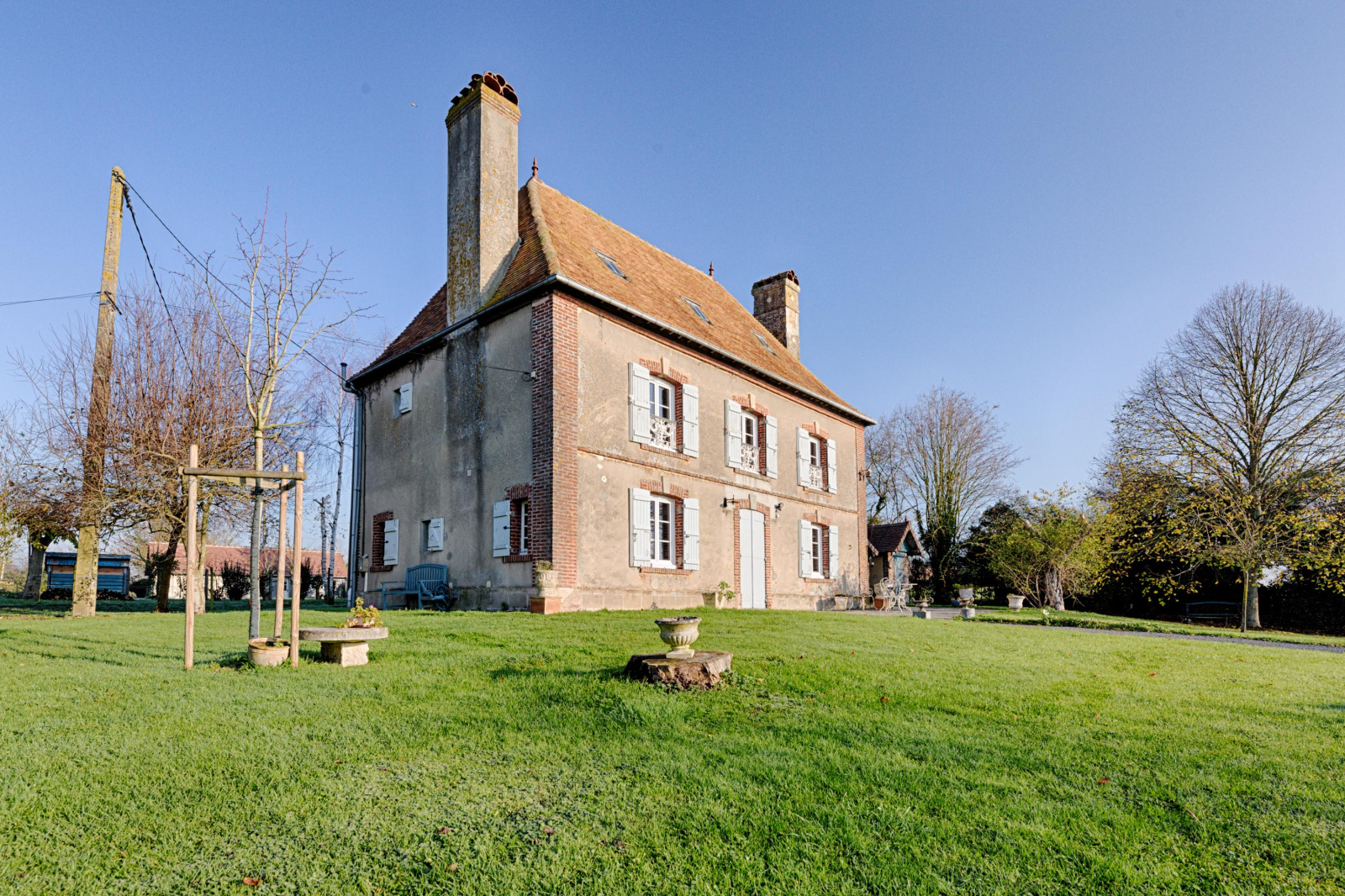Sur un terrain de 6 000 m², une maison principale de 150 m² et deux dépendances de chacune 85 m² environ.