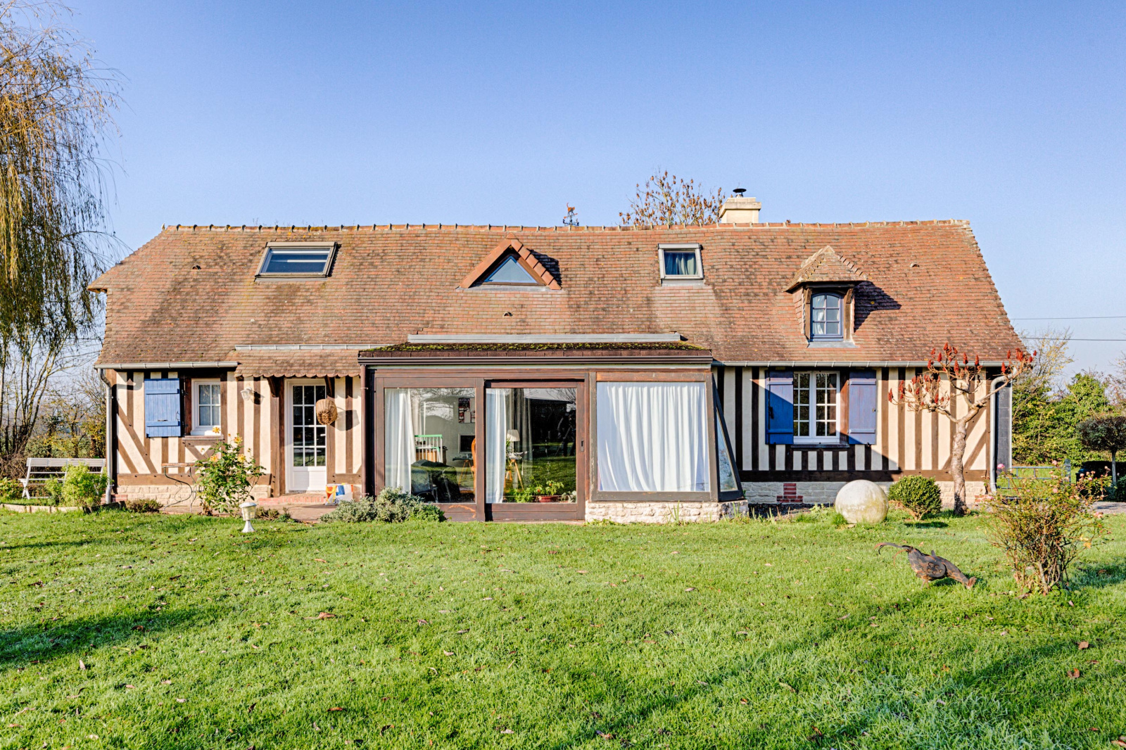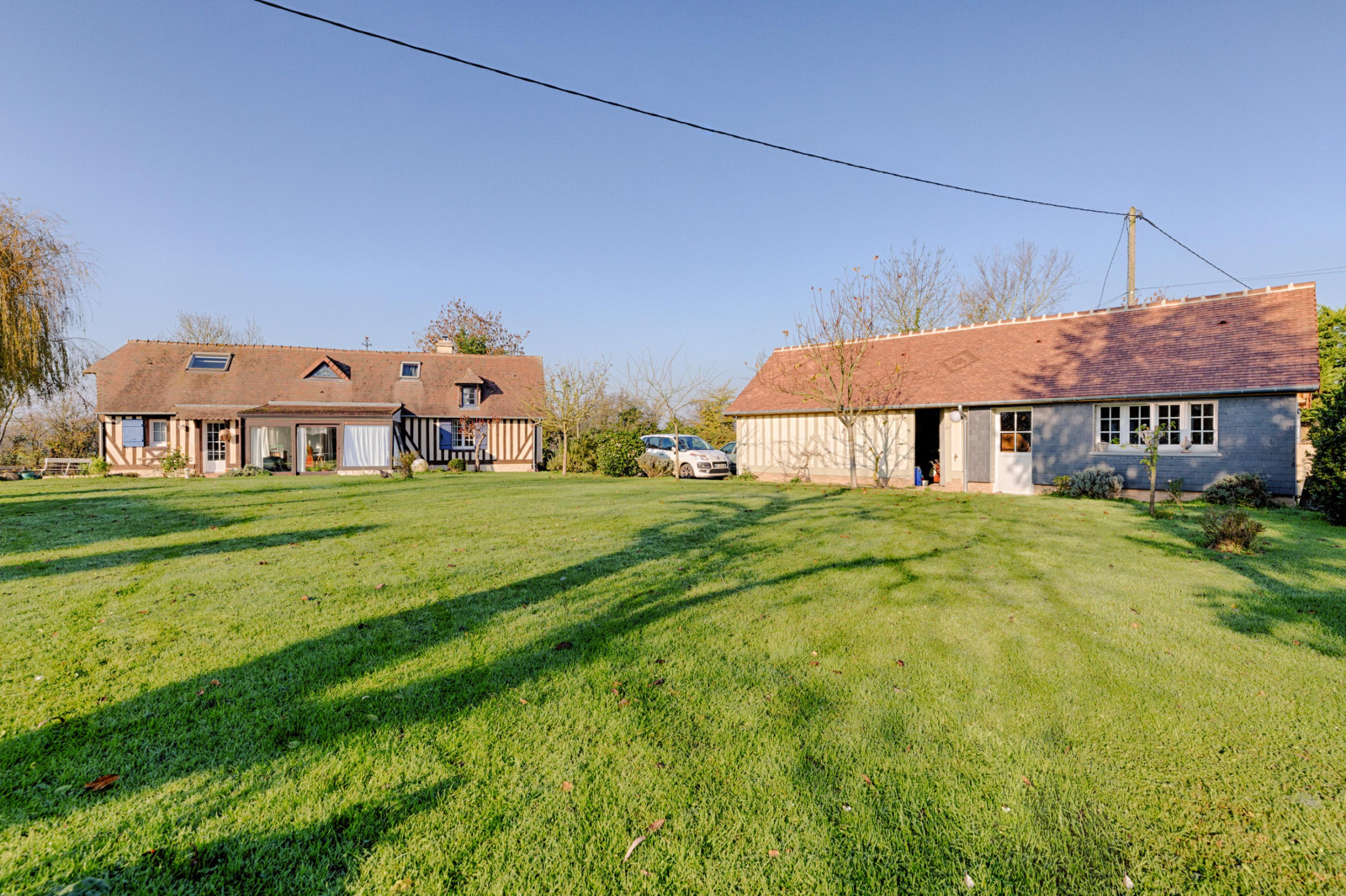 La seconde dépendance est une maison normande contemporaine comprenant au rez-de-chaussée un salon, une cuisine, un coin bureau dans la véranda, une chambre et une salle de bain. A l’étage, deux chambres et une salle de bain.