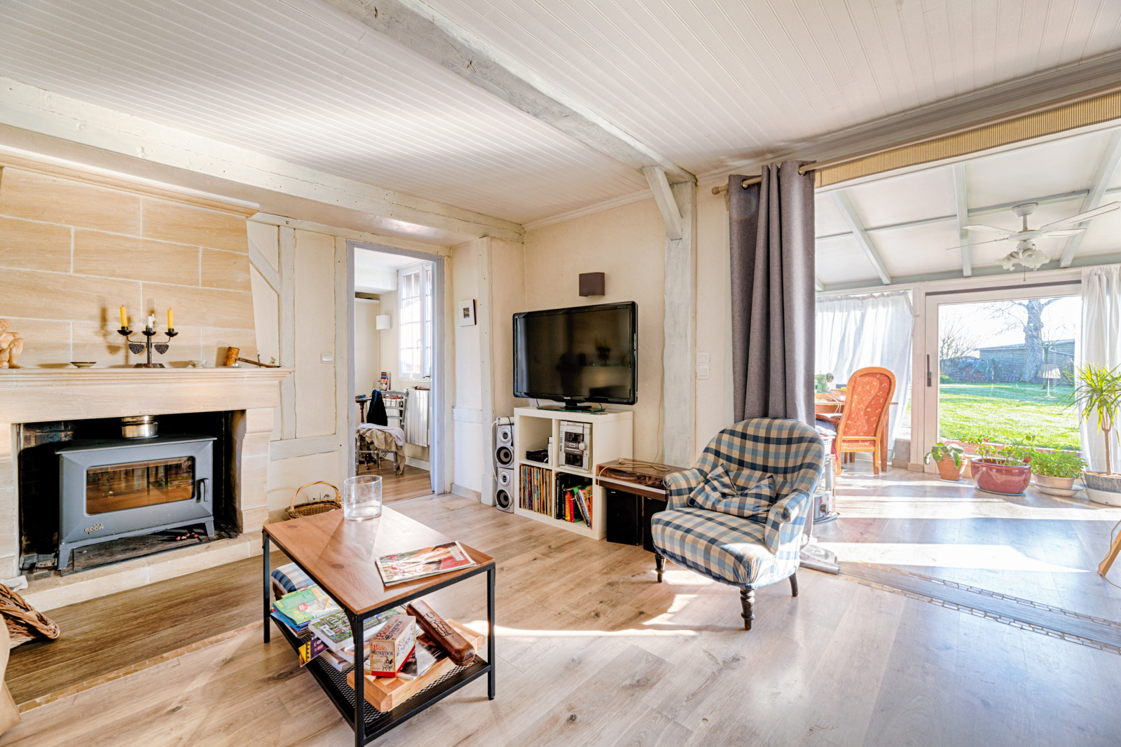 La principale dépendance est une belle longère à colombages comprenant au rez-de-chaussée un salon, une cuisine, une salle de douche et à l’étage deux chambres.