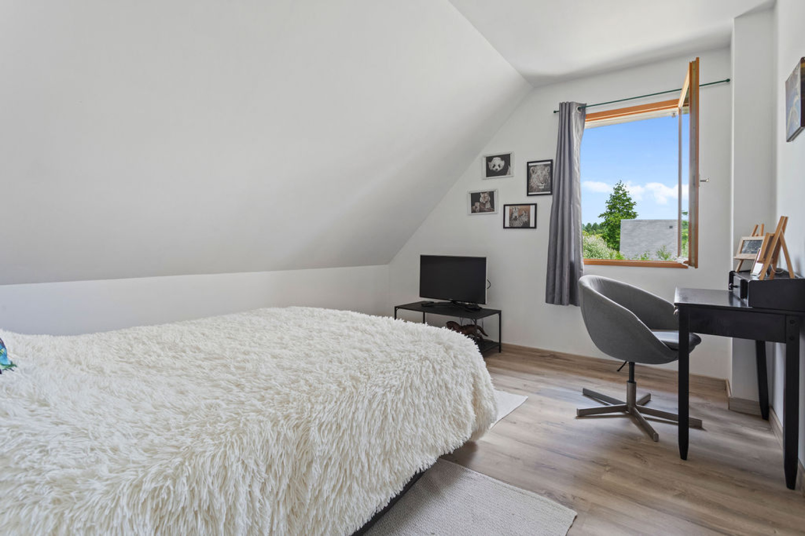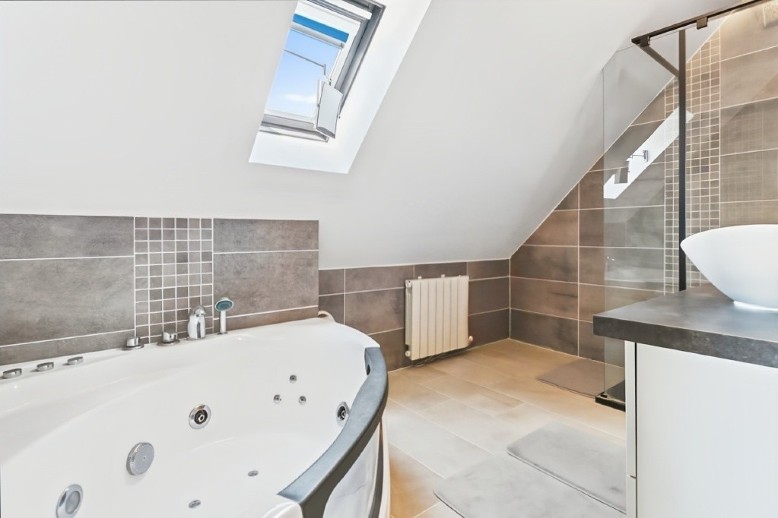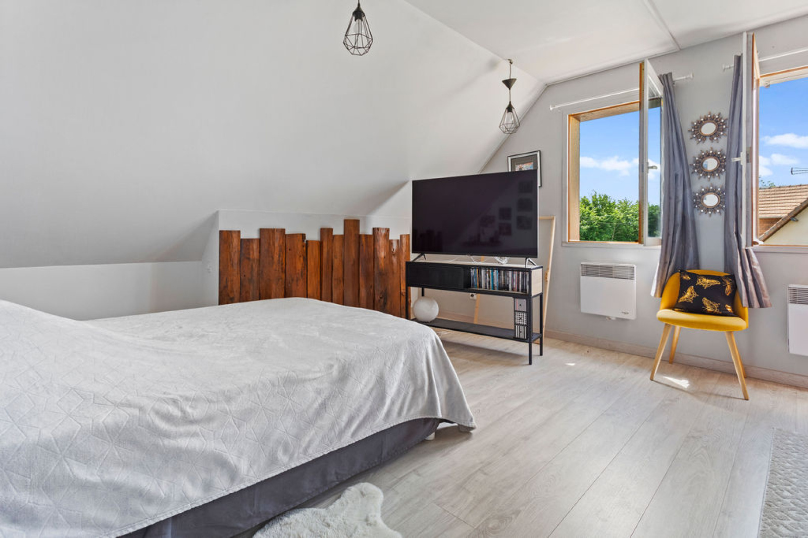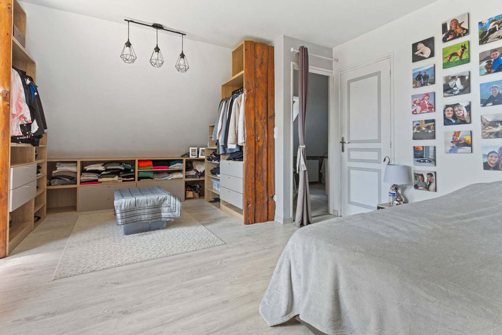A l’étage, une suite parentale de 22m² avec dressing, une grande salle de bains, deux chambres et un WC séparé.