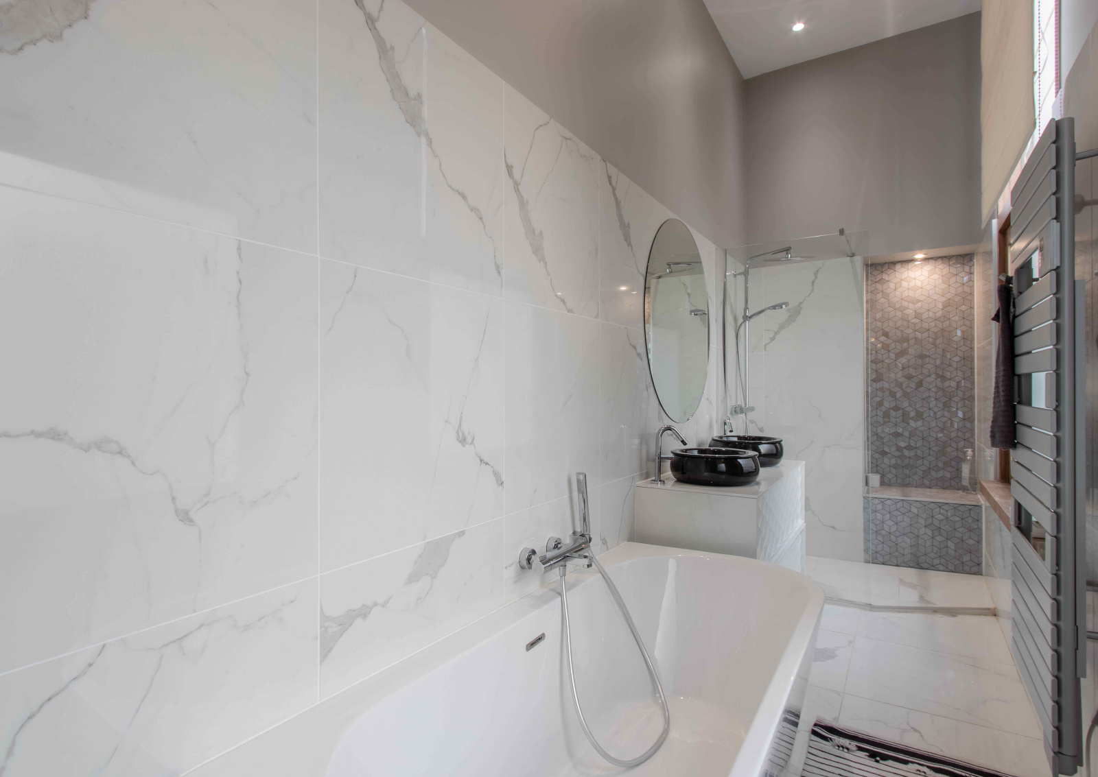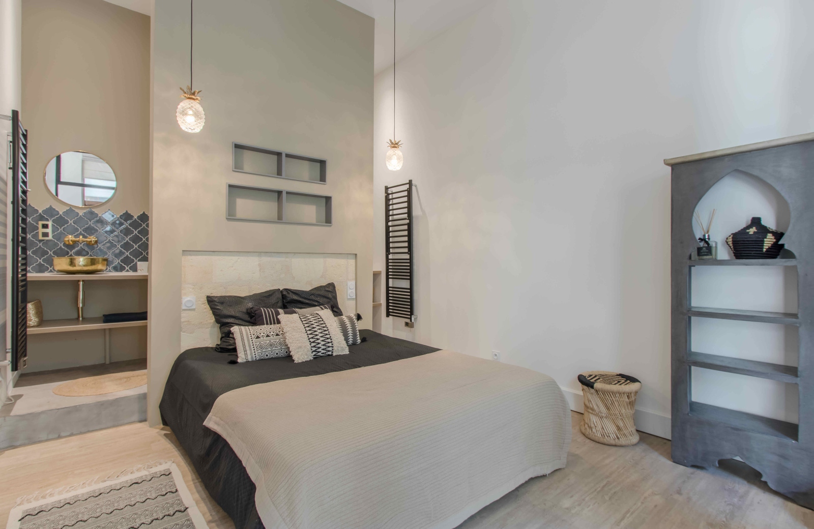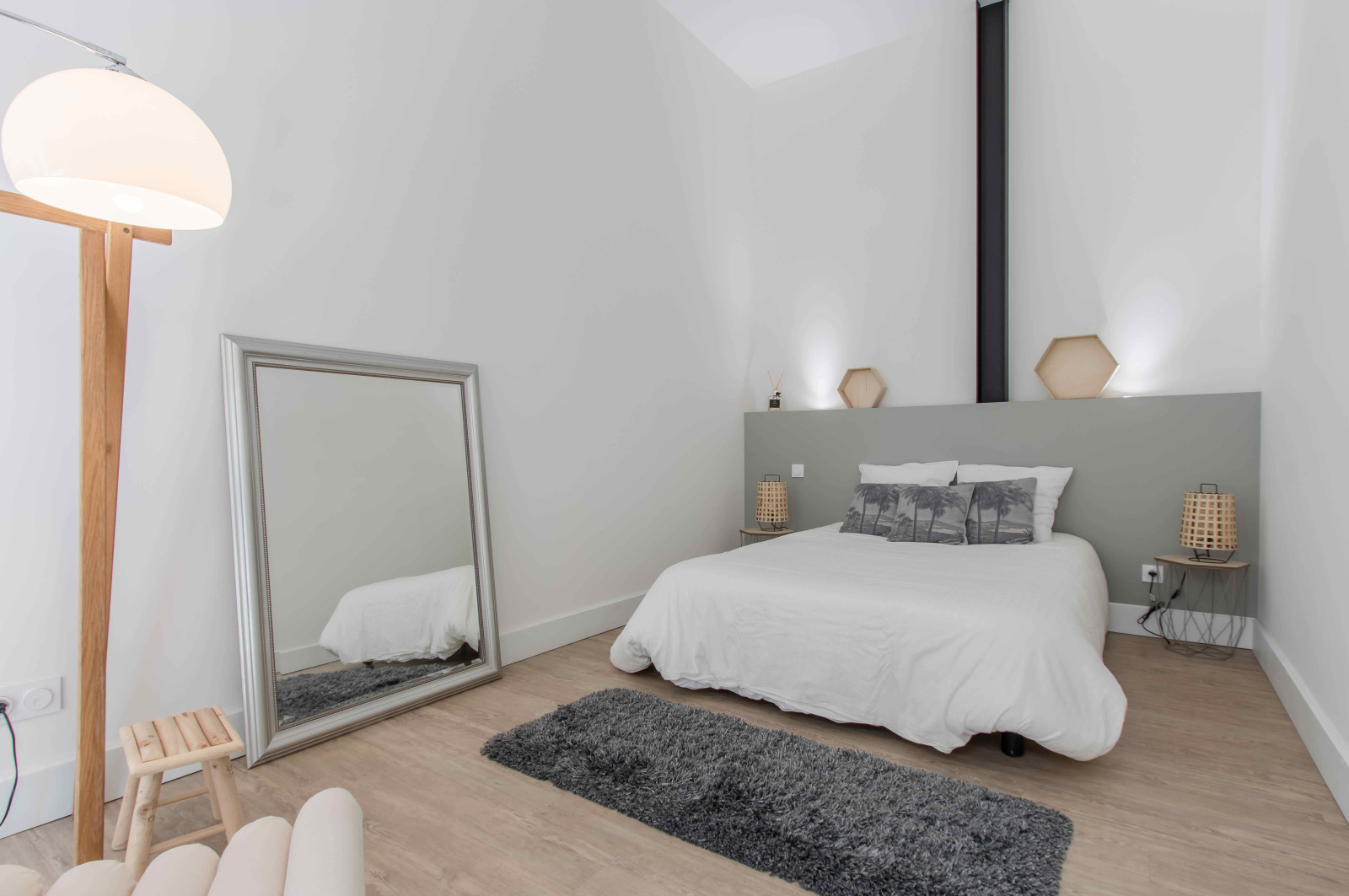 Il se compose d'une entrée, d'une belle pièce de réception avec une cuisine ouverte et équipée de 50 m², d'une suite parentale avec sa salle de douche de plus de 15 m², de deux grandes chambres (13,12 m² et 13,04 m²) avec leur salle de bains, de WC séparés et d'un patio abrité d'une verrière. L'ensemble bénéficie d'une belle hauteur sous plafond et de nombreux rangements. Peut être vendu meublé.