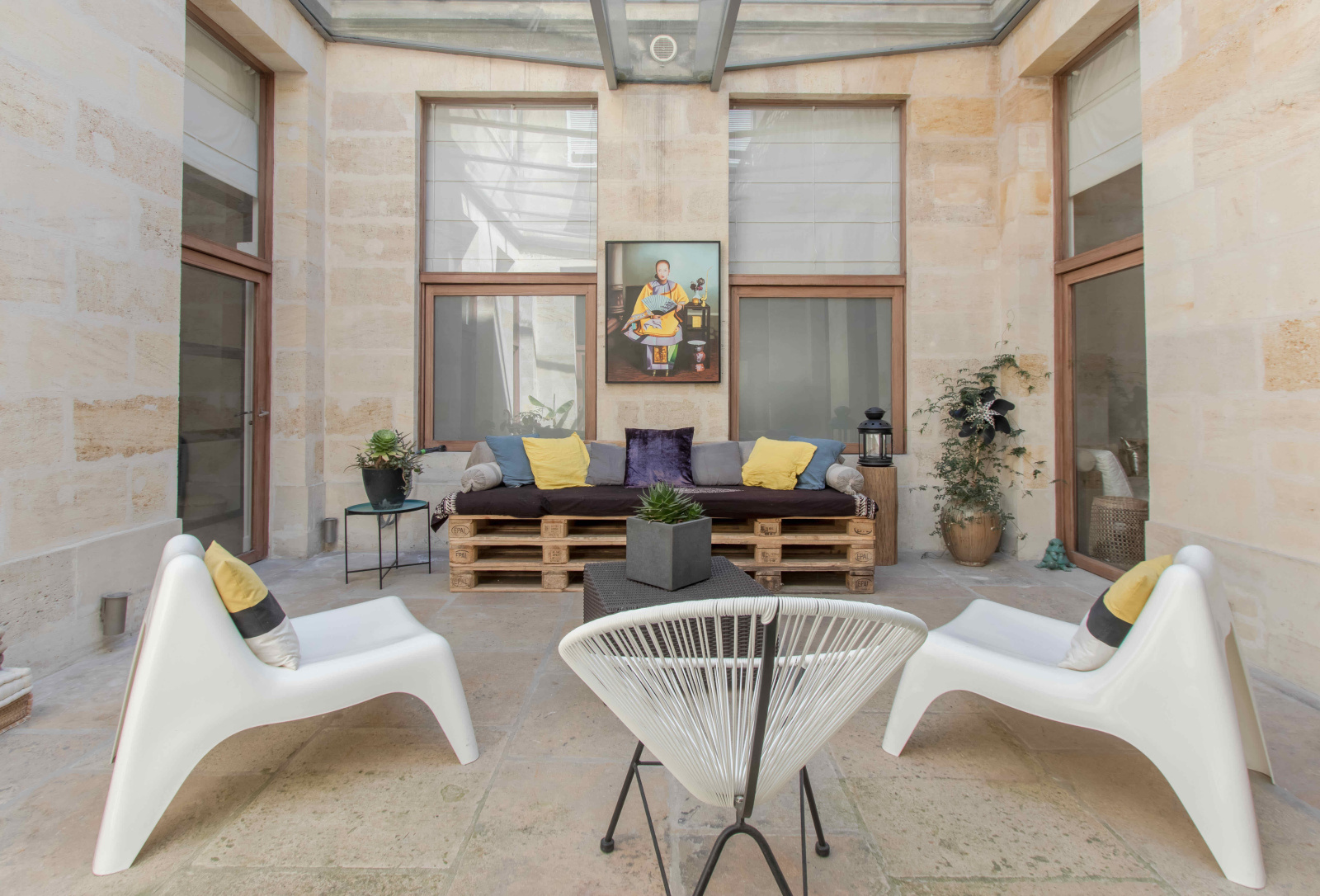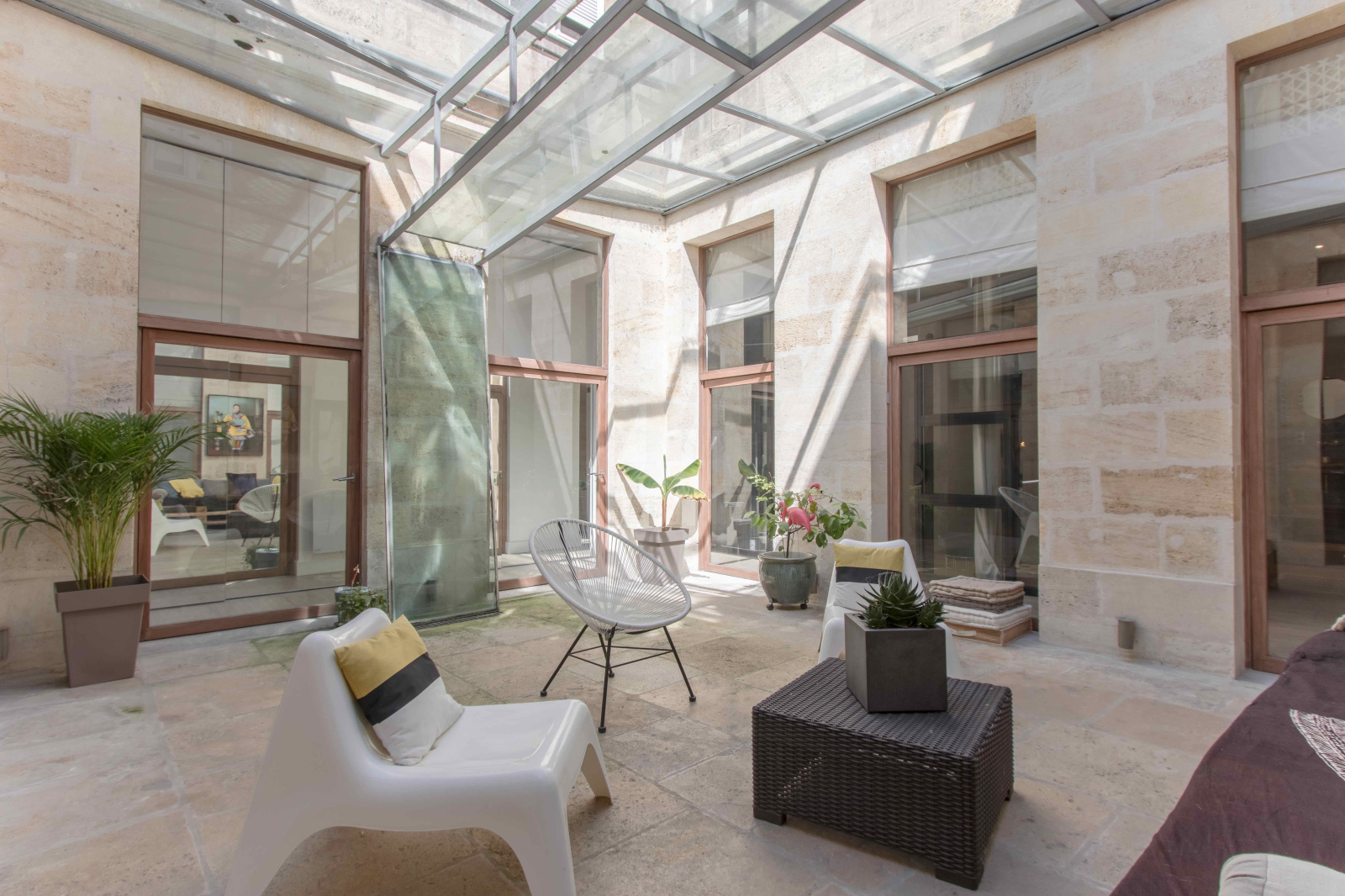 Bordeaux (33000)A quelques pas du Triangle d'Or, au premier étage avec ascenseur d’un bel immeuble de deux étages, un appartement de 125,72 m² Carrez, entièrement rénové et bénéficiant d'un patio de 30 m².
