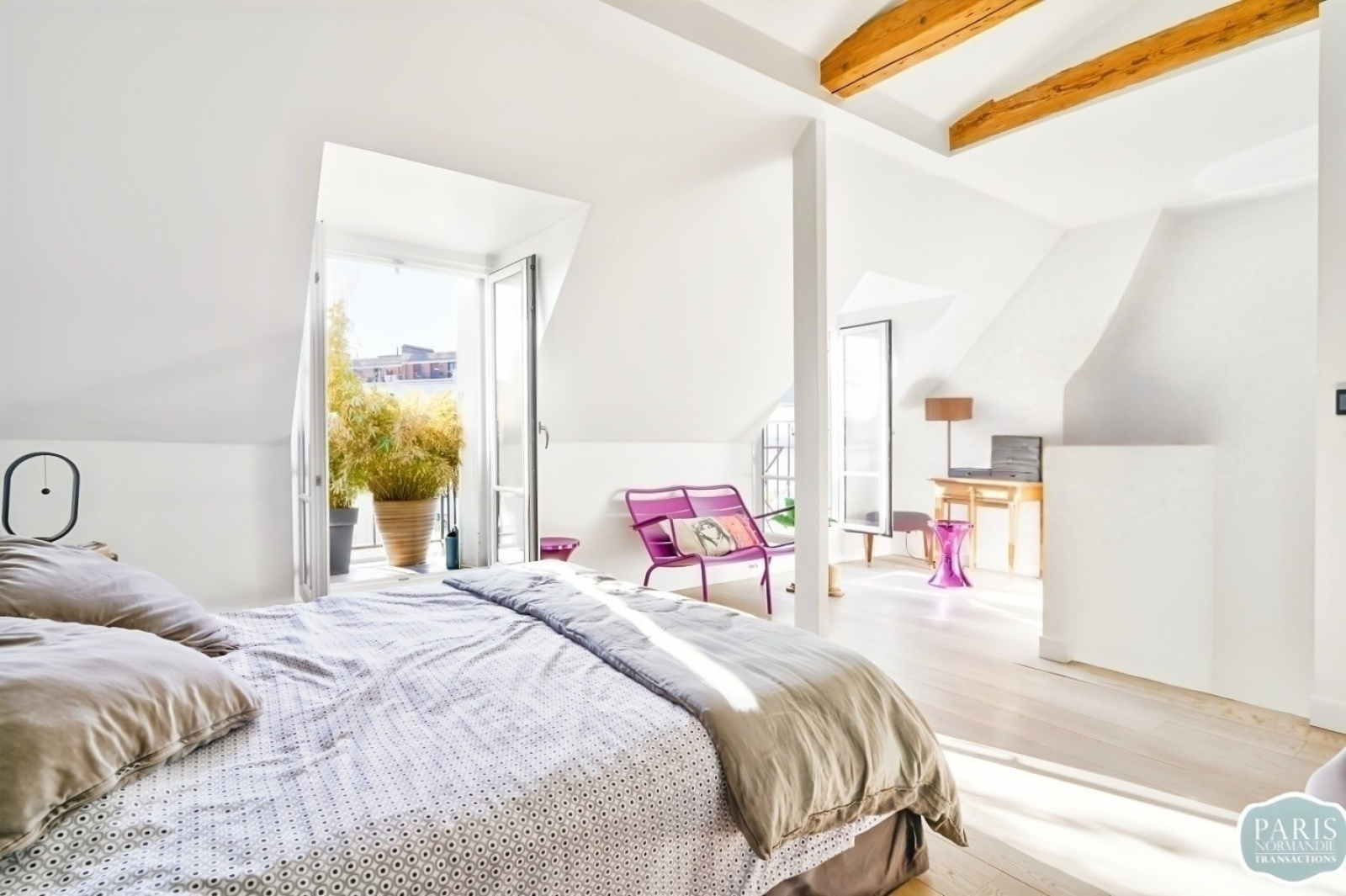 Aux derniers étages d’un bel immeuble haussmannien, un très beau duplex ensoleillé et traversant de 191,45m² Carrez et 200m² au sol. Il se compose d’une belle galerie d’entrée, d’une grande pièce de réception de 80m² comprenant un salon, une cuisine américaine entièrement équipée, un petit cellier et une salle à manger avec une cheminée fonctionnelle donnant sur un long et joli balcon arboré, d’un WC invité, d’une suite parentale en duplex de 30m² avec son dressing et sa salle de bains, de trois autres chambres (13m² avec sa salle de douche, 19m² et 16m²), d’une grande salle de bains avec WC et d’un espace buanderie.