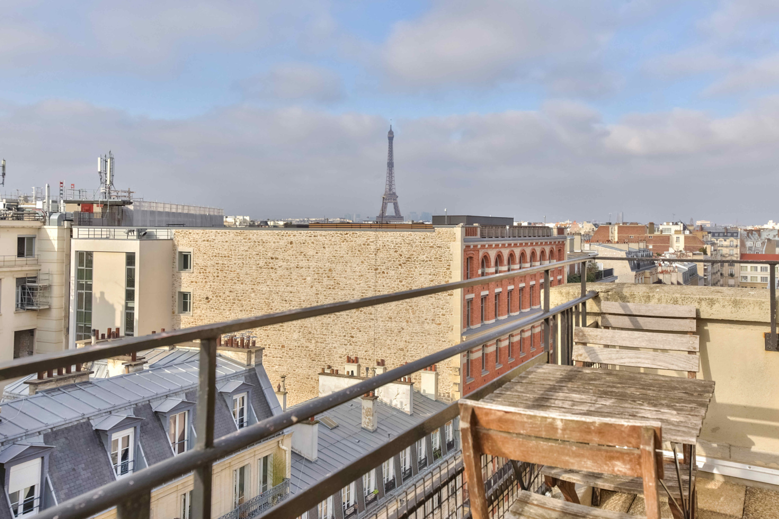 Au 8ème étage, avec ascenseur, un appartement ensoleillé et sans vis à vis de 30,67m2 Carrez avec une petite terrasse de 6m2 exposé sud-ouest et bénéficiant d’une belle vue sur la tour Eiffel. Il se compose d’une petite entrée, d’une pièce principale, d’une cuisine séparée et d’une salle de bains.