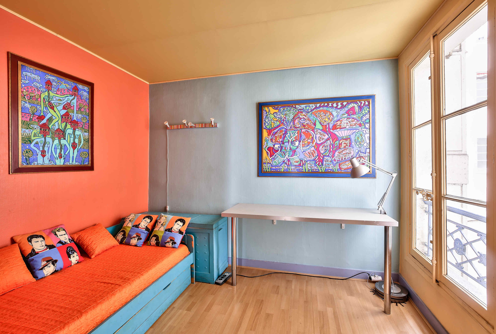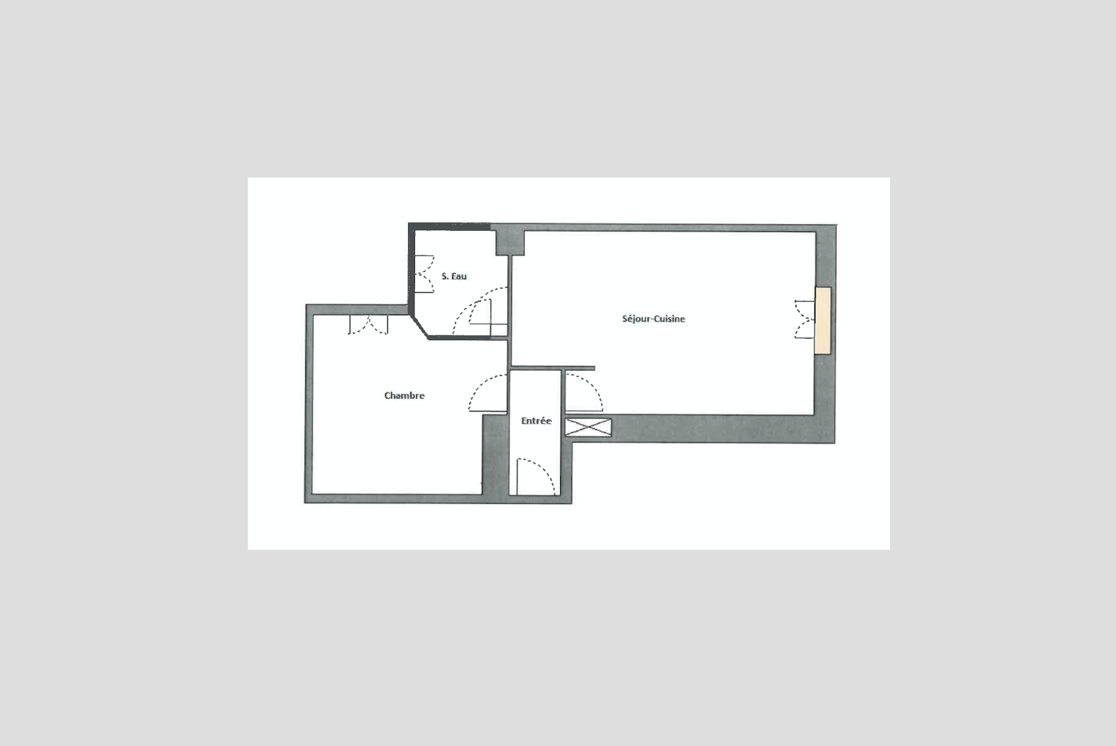 Il se compose en l’état d'une petite entrée donnant sur un salon avec cuisine américaine de plus de 18m², d'une chambre de 10m² et d'une salle de bains.