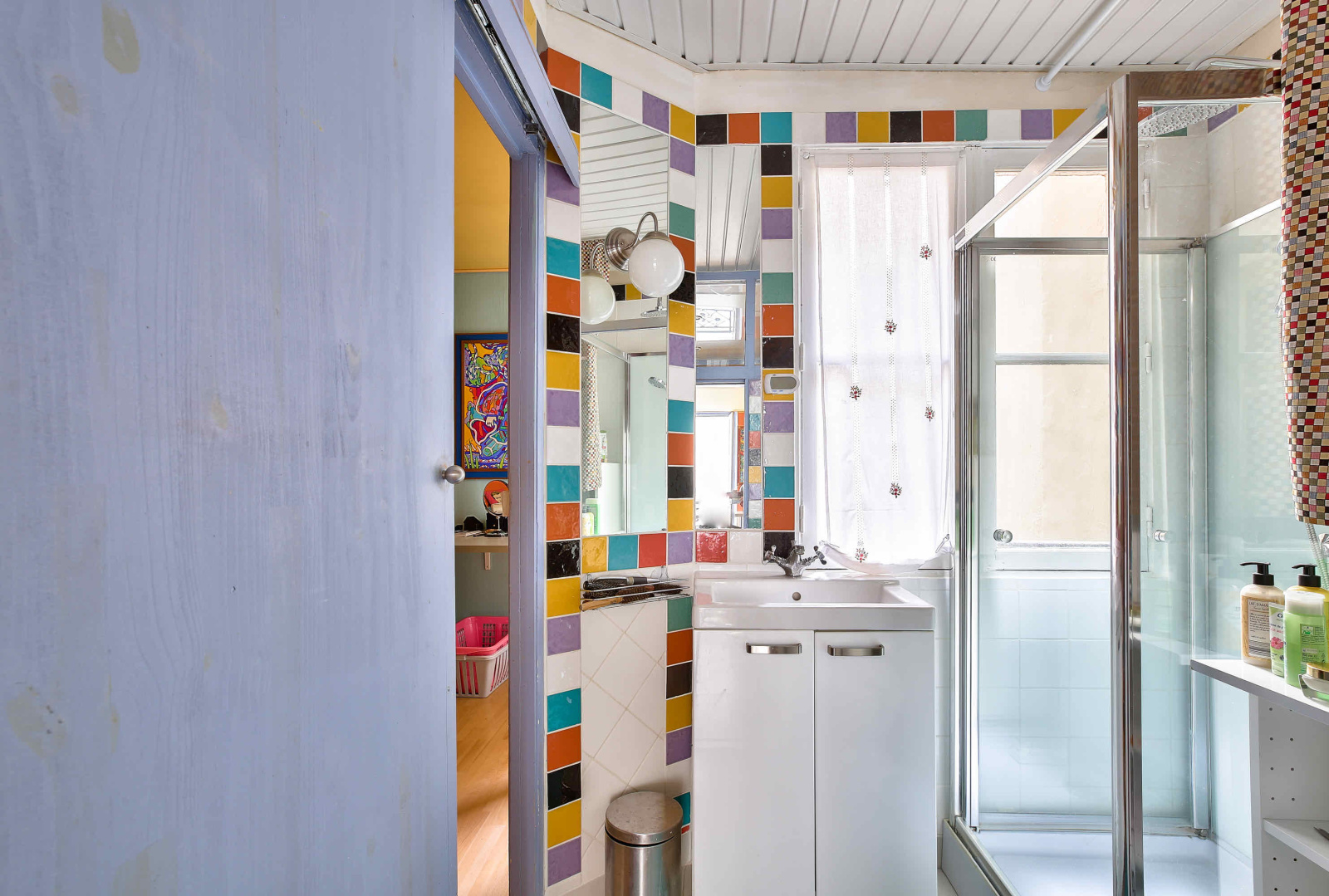 Il se compose d'une petite entrée donnant sur un salon avec cuisine américaine de plus de 18m², d'une chambre de 10m² et d'une salle de bains.