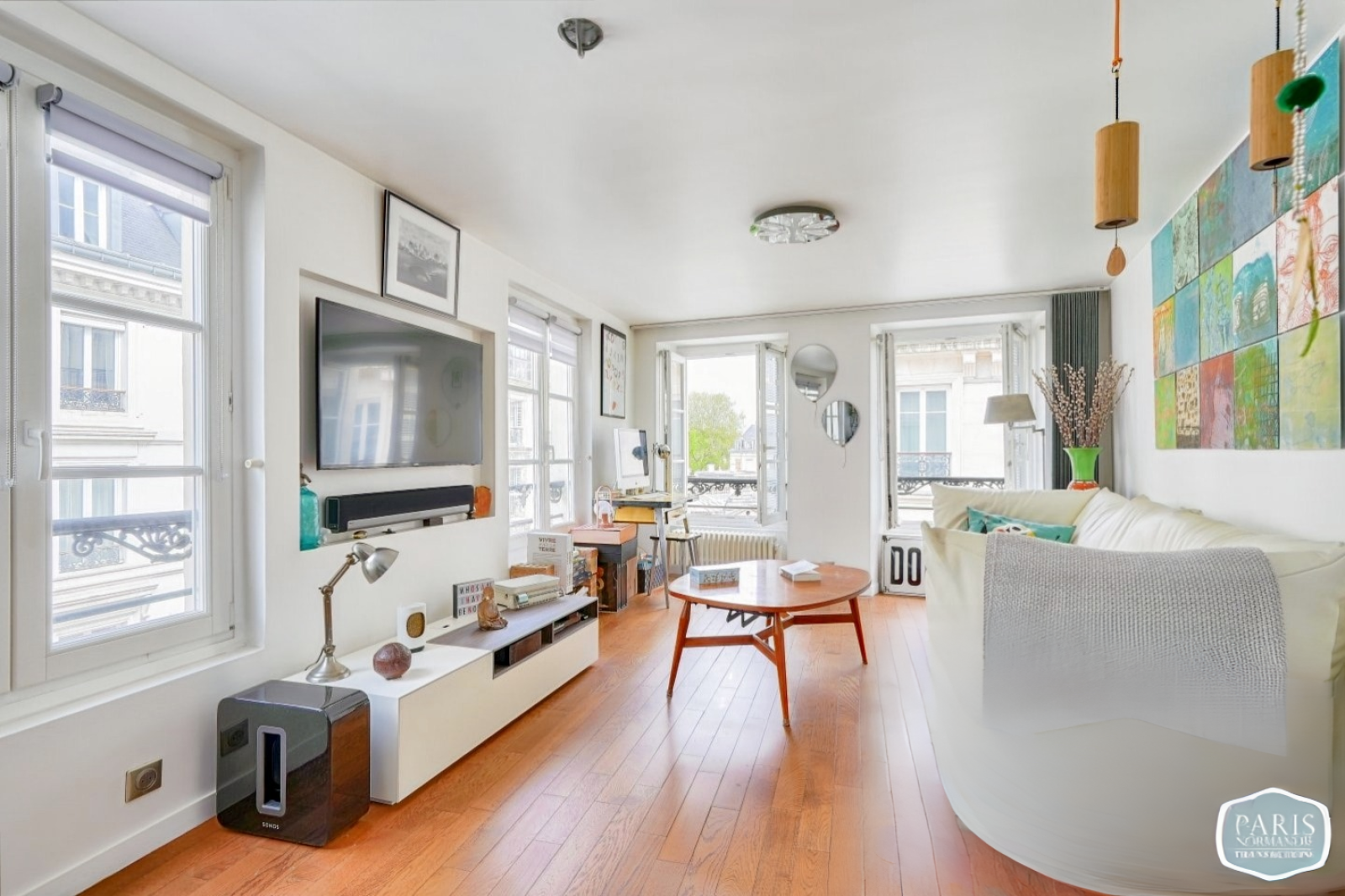 Appartement au plan optimisé, seul à l’étage, doubles vitrages, idéalement situé dans un quartier très recherché au centre de Paris.