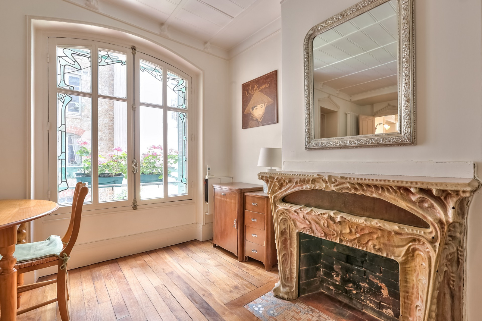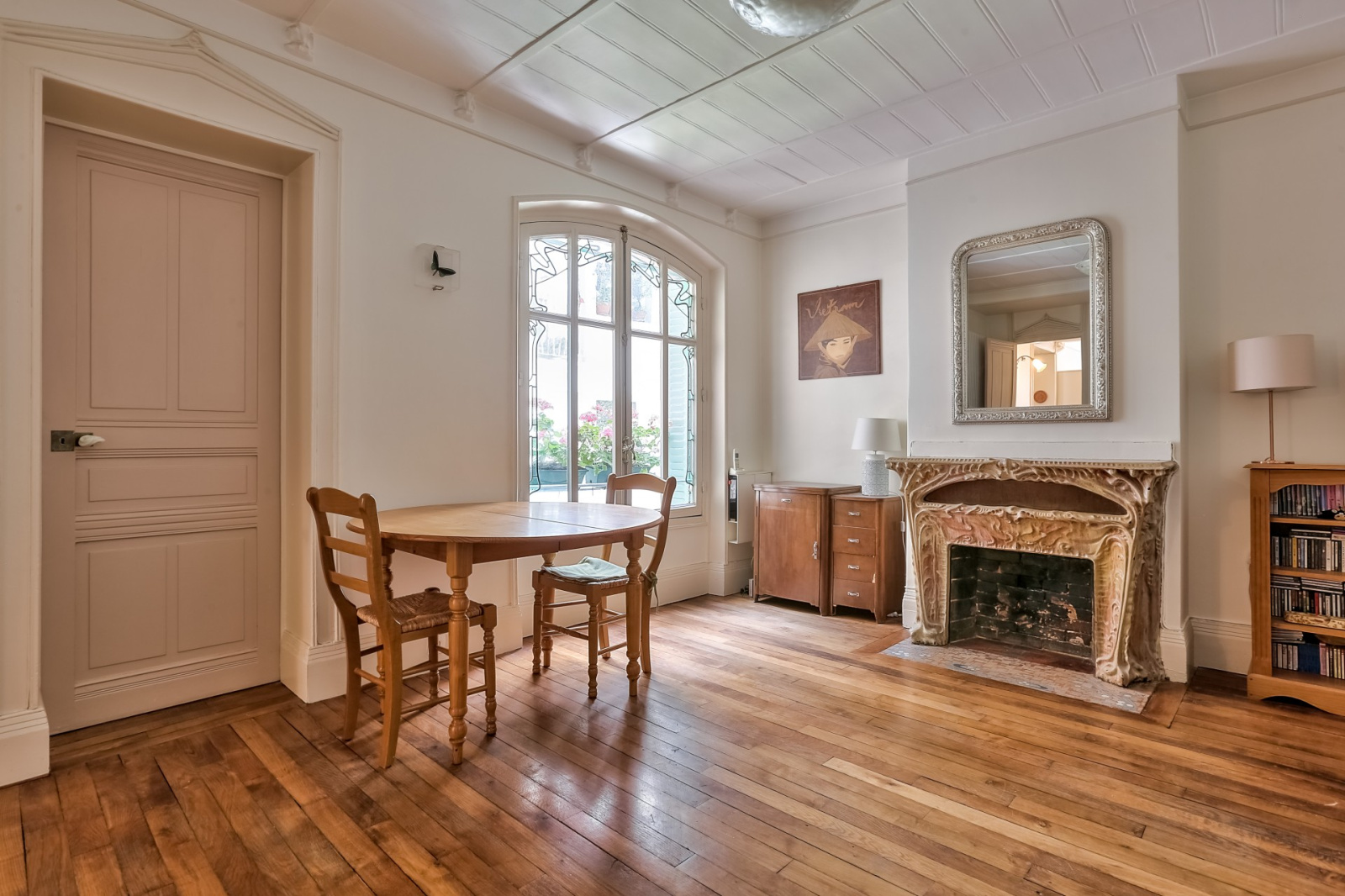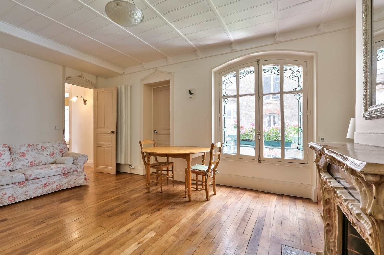 Au premier étage et au calme absolu, un très bel appartement familial et lumineux de 70m² Carrez bénéficiant d’un très bon plan, il se compose d’une entrée donnant sur une jolie verrière décorée de serrureries et de vitraux exceptionnels, d’un séjour avec une cheminée en pierre de lave émaillée, d’un joli parquet et de très belles moulures, d’une cuisine indépendante, d’un WC séparé, d’une chambre parentale avec dressing, d’une deuxième chambre et d’une salle de bains.