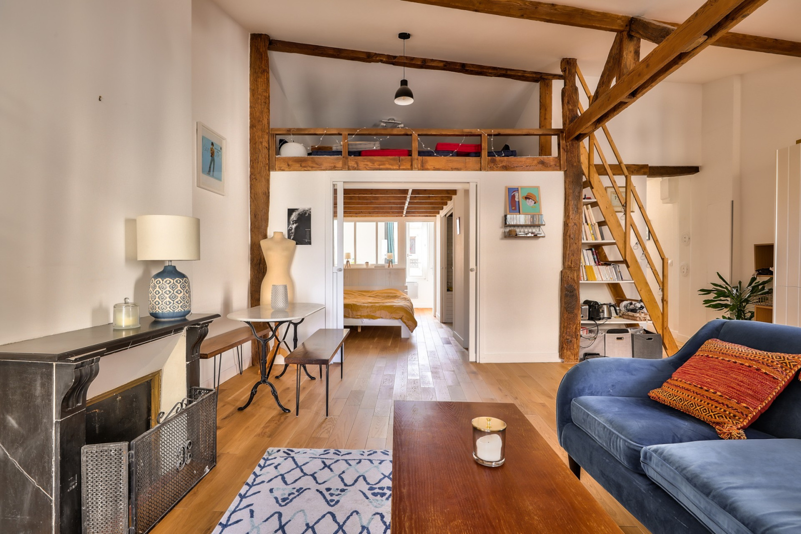 Seul, au 3ème et dernier étage d’un immeuble de 1850, sans ascenseur, un appartement lumineux et traversant de 51,20m² au sol (48,84m² Carrez) en très bon état, au calme, sans vis à vis et bénéficiant d’une belle hauteur sous plafond de plus de 3,20m.
