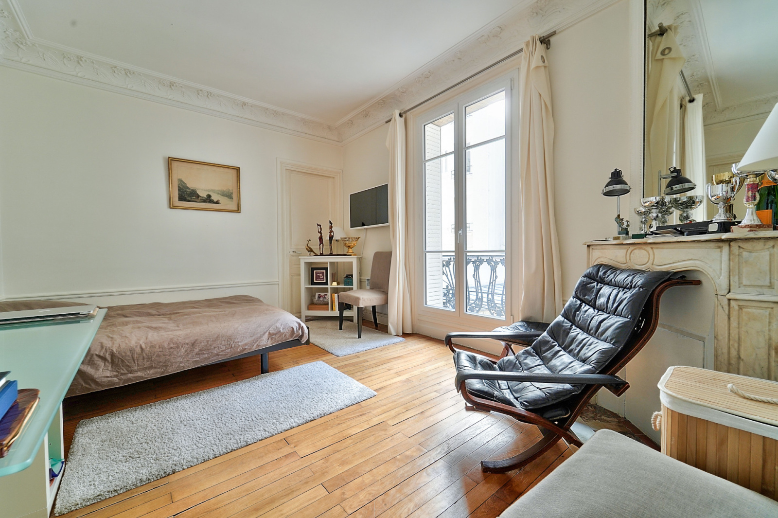 Au 1er étage d’un bel immeuble Haussmannien avec ascenseur, un appartement sur cour au calme absolu et en bon état de 73,34m² au sol (72,6m² Carrez).