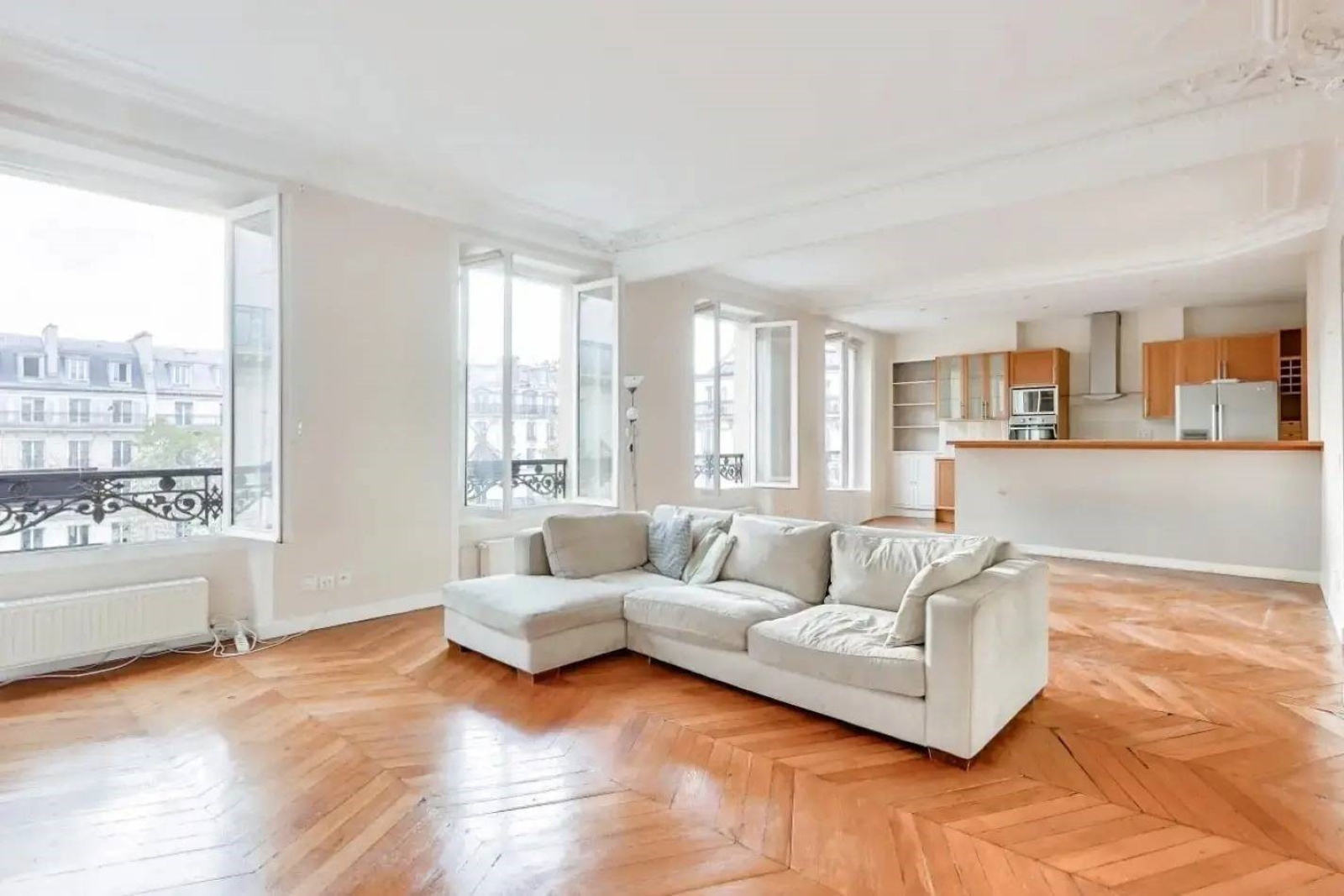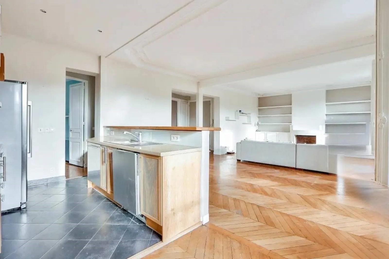 Au 4ème étage sans ascenseur d’un immeuble ancien, seul à l’étage, un très bel appartement traversant et sans vis-à-vis de 111,87m² Carrez (113,13m² au sol).
