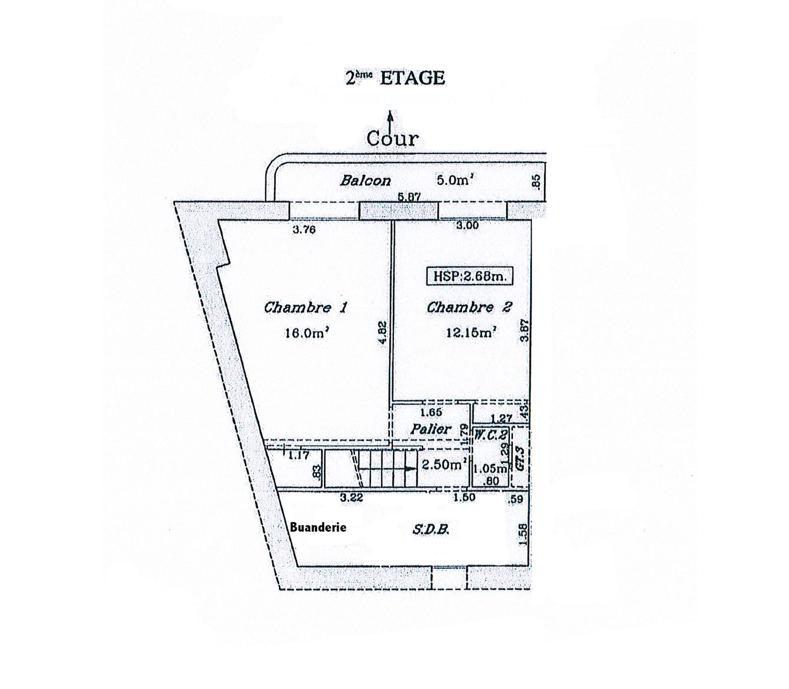 A l’étage, 2 belles chambres de 12 et 16m² donnant sur un balcon ensoleillé, une grande salle de bains avec un espace buanderie et des toilettes séparées.