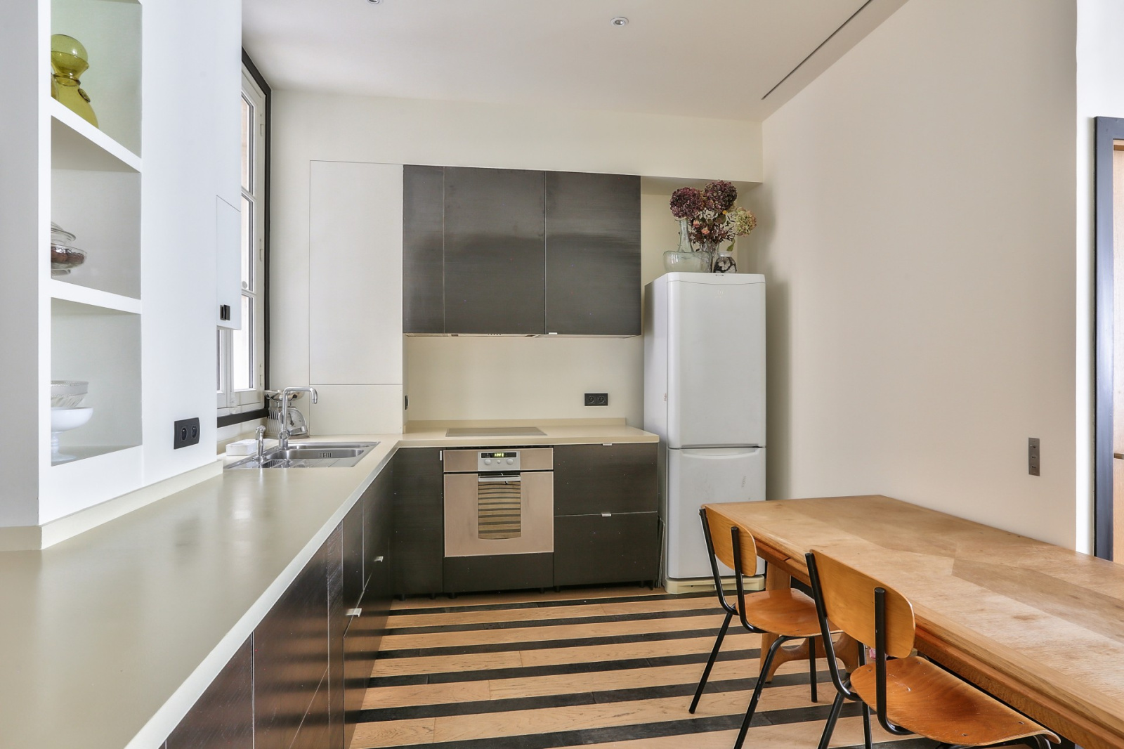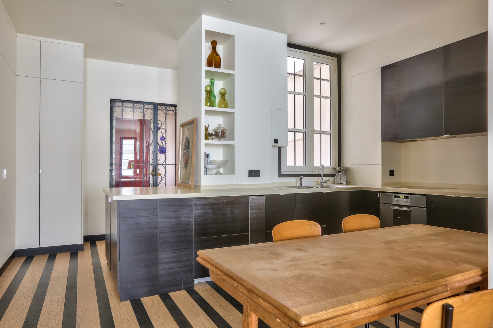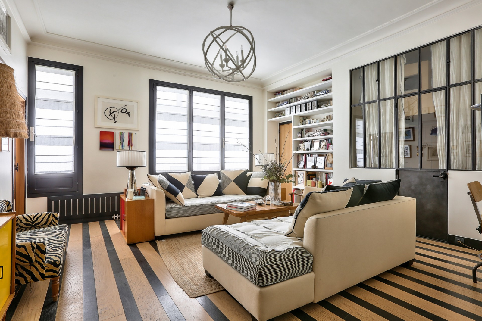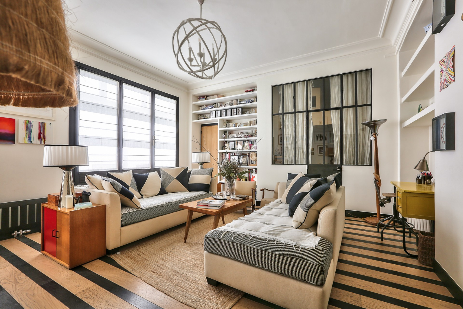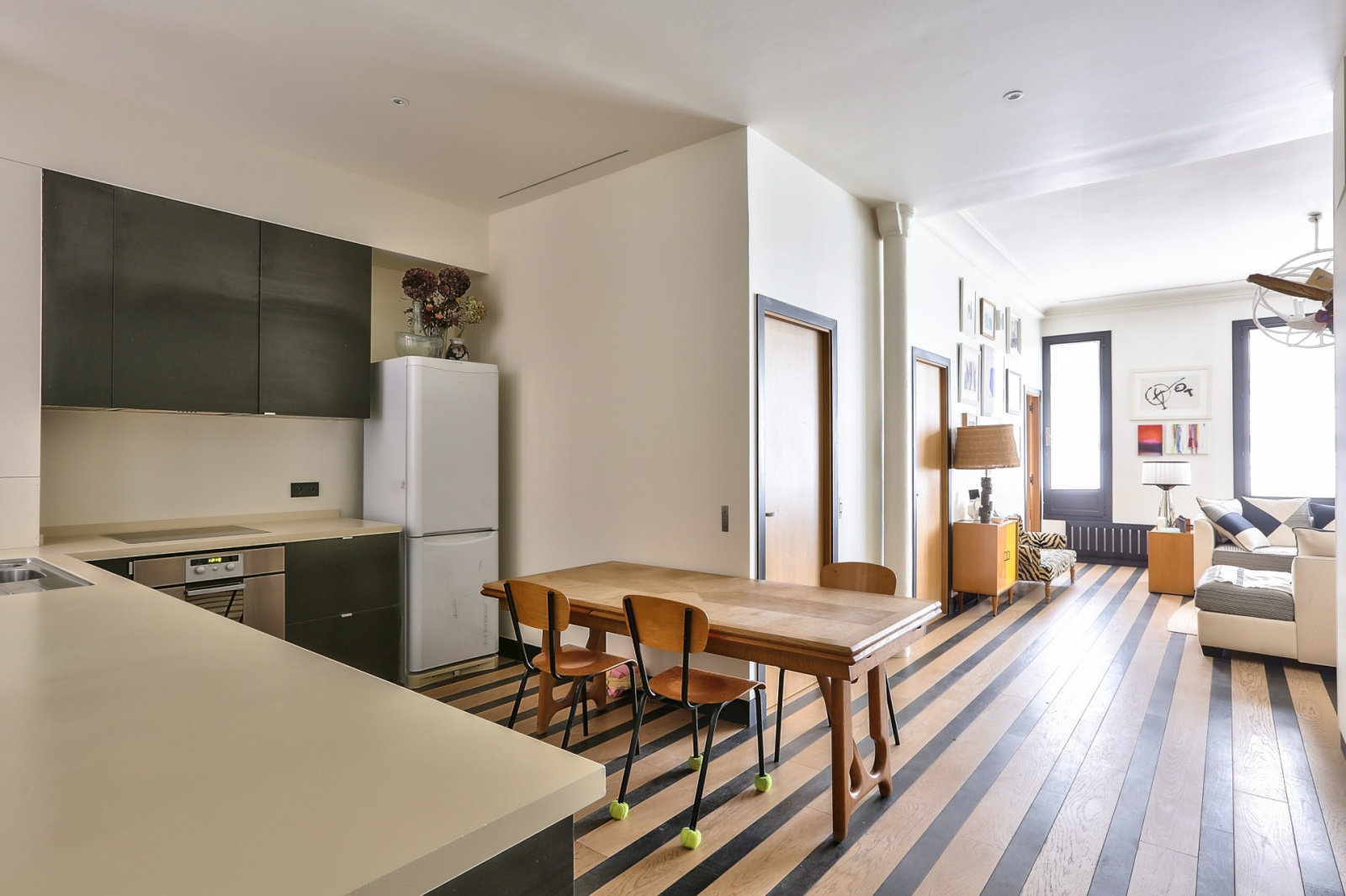Dans un bel immeuble en pierre de taille, au rez-de-chaussée, un ancien atelier de 82,73m² Carrez sur un seul niveau, calme, lumineux et rénové avec de très beaux matériaux par un architecte de renom.