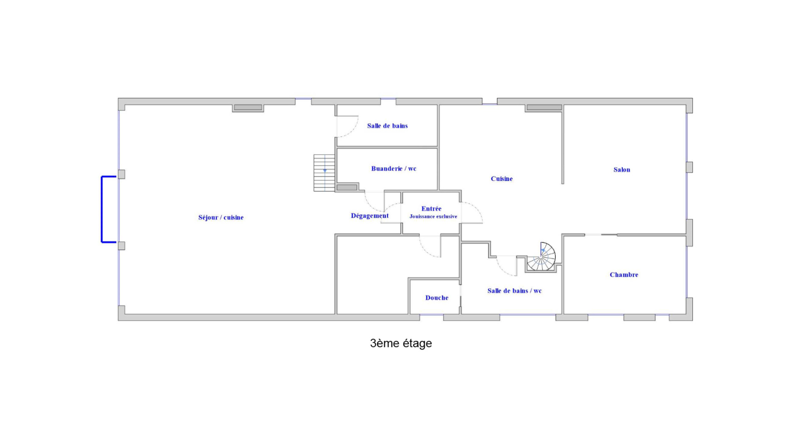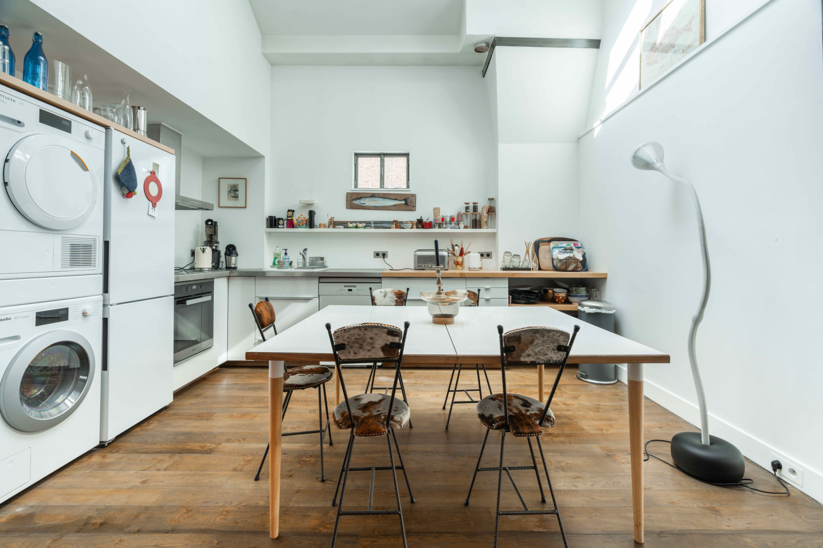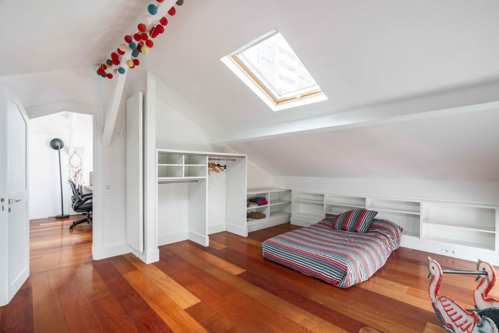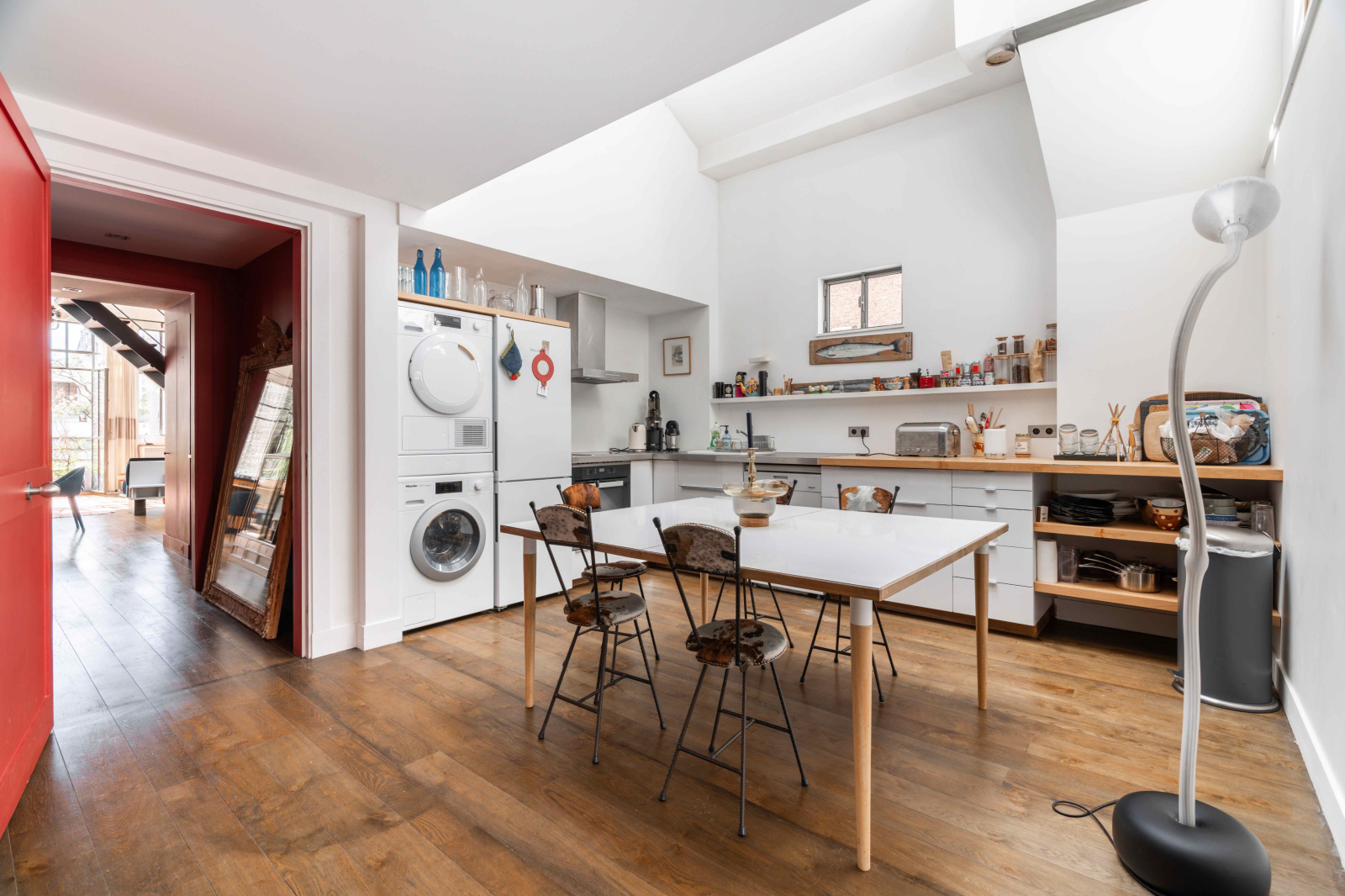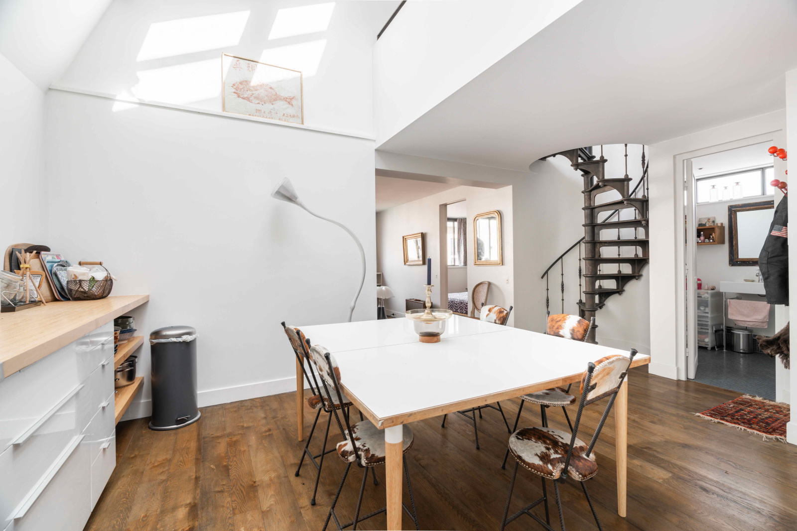 Situé au troisième étage sans ascenseur de cette petite copropriété bien tenue, cet espace exceptionnel est le fruit de la réunion de deux lots, formant finalement un vaste espace familial.