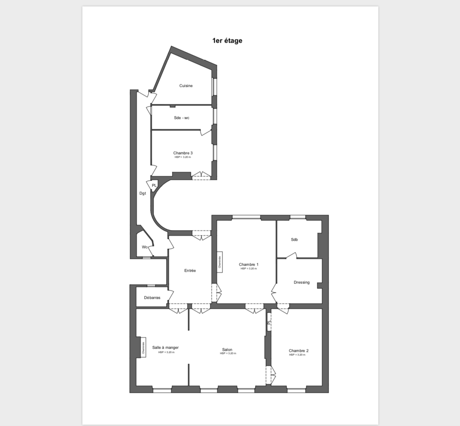 Il se compose en l’état d’une belle entrée, d’une grande pièce de réception lumineuse de plus de 50m² bénéficiant d’une grande hauteur sous plafond de 3,20m, de moulures et de 3 cheminées fonctionnelles, d’une grande cuisine, de 3 chambres (25, 20 et 14m²), de 2 salles de bains dont une avec WC et d'un WC invités.