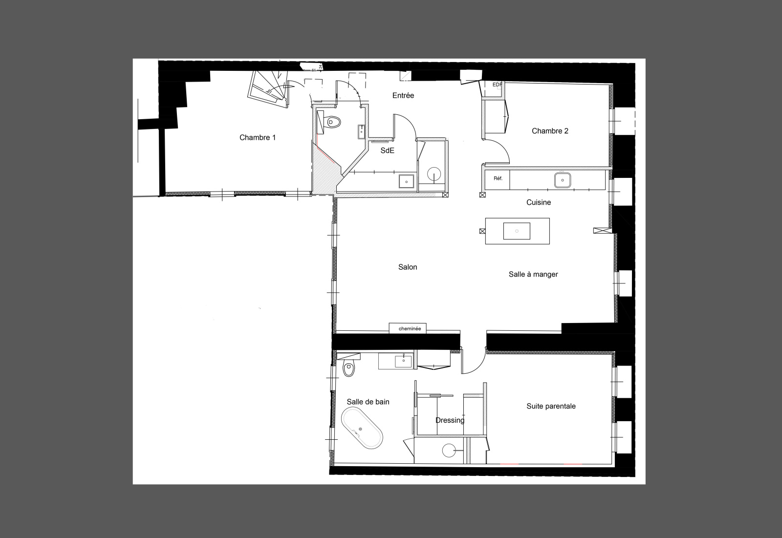 Il se compose d’une entrée, d’un WC invité, d’une grande pièce de réception ensoleillée et traversante (Est/Ouest) de plus de 39m2 avec sa cuisine américaine et une cheminée fonctionnelle, d’une suite parentale avec son dressing et sa salle de bains de plus de 27m2, de deux autres chambres de 12 et 14m2 et d’une salle de bains.