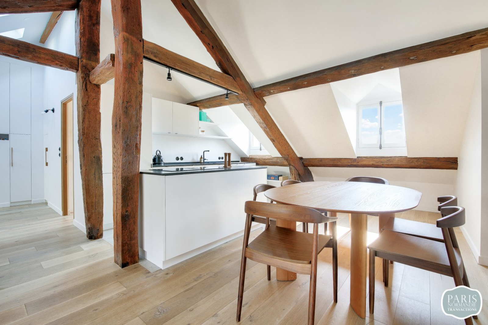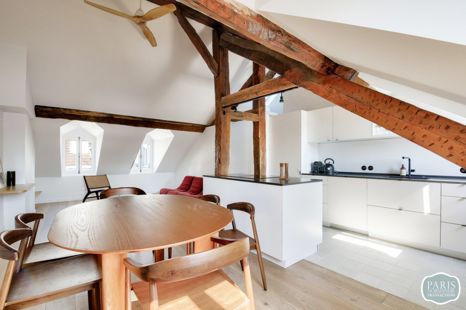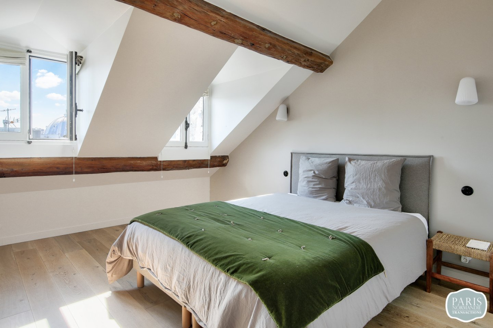 Dans un très bel immeuble de 1830, au 6ème et dernier étage avec ascenseur, un exceptionnel loft familial de 81,22m2 Carrez et 113m2 au sol. Entièrement rénové en 2024, très bonne isolation, poutres apparentes, parquet massif et double vitrage.