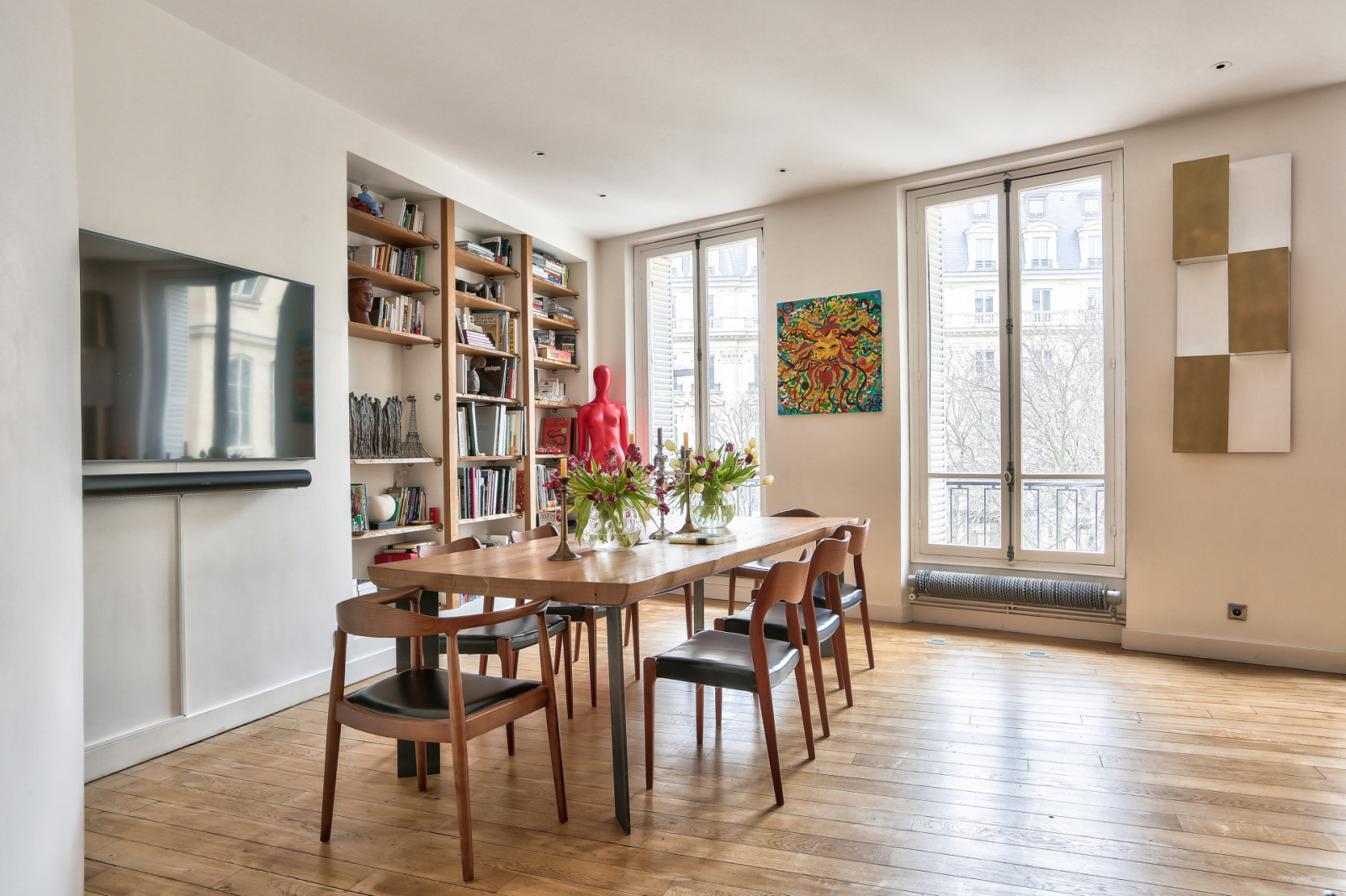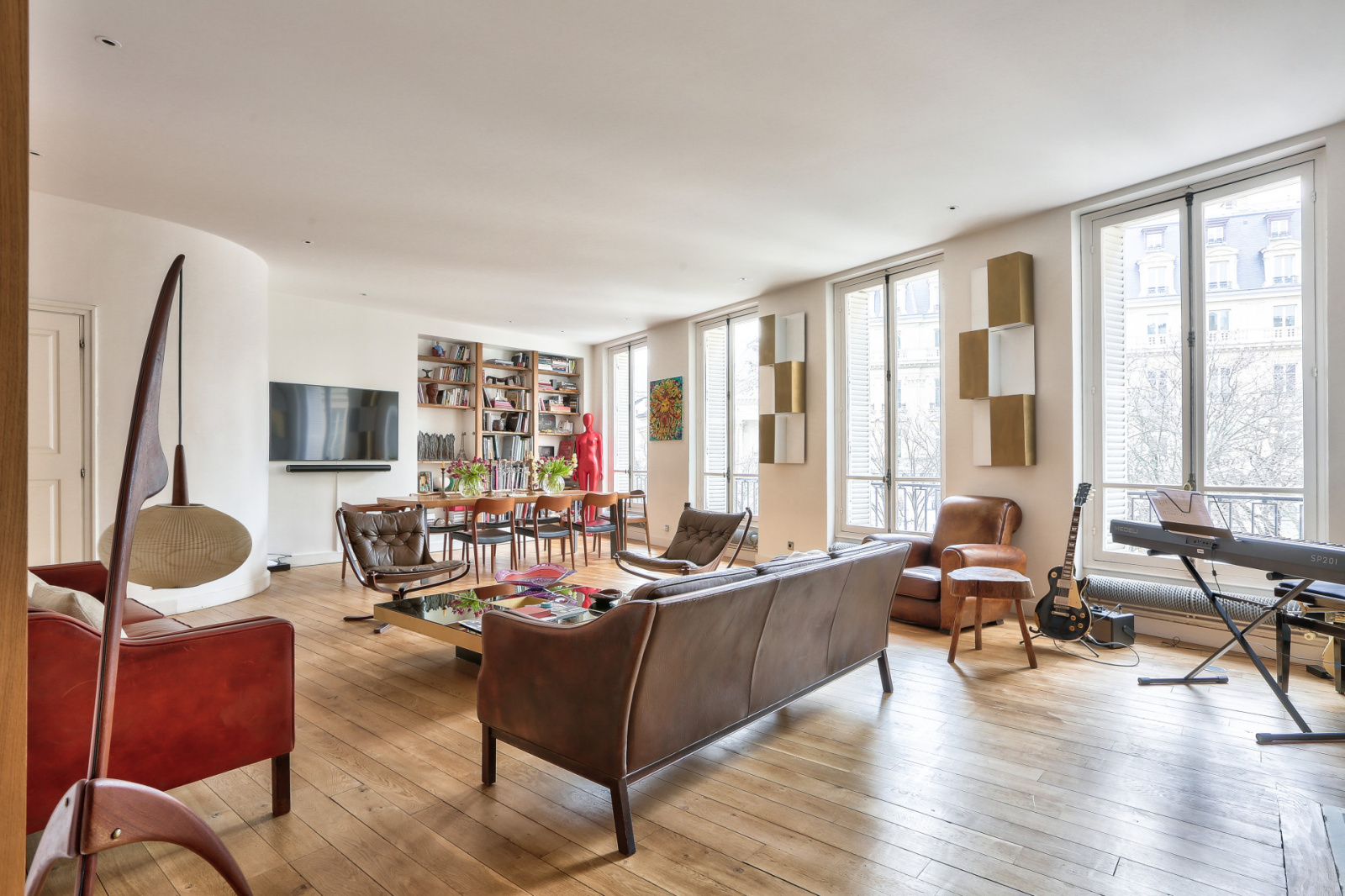 Au 2ème étage avec ascenseur d’un bel immeuble Haussmannien, un appartement à la fois familial et de réception de 168,80m² Carrez (180m² au sol) bénéficiant d’une très belle hauteur sous plafond de plus de 2,90m et d’un beau parquet massif.
