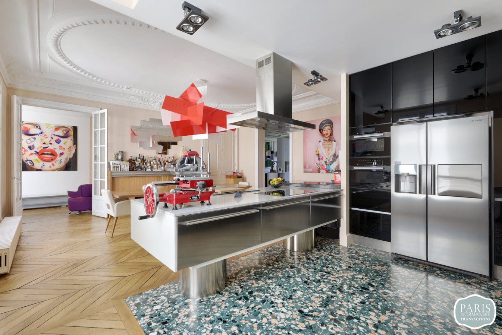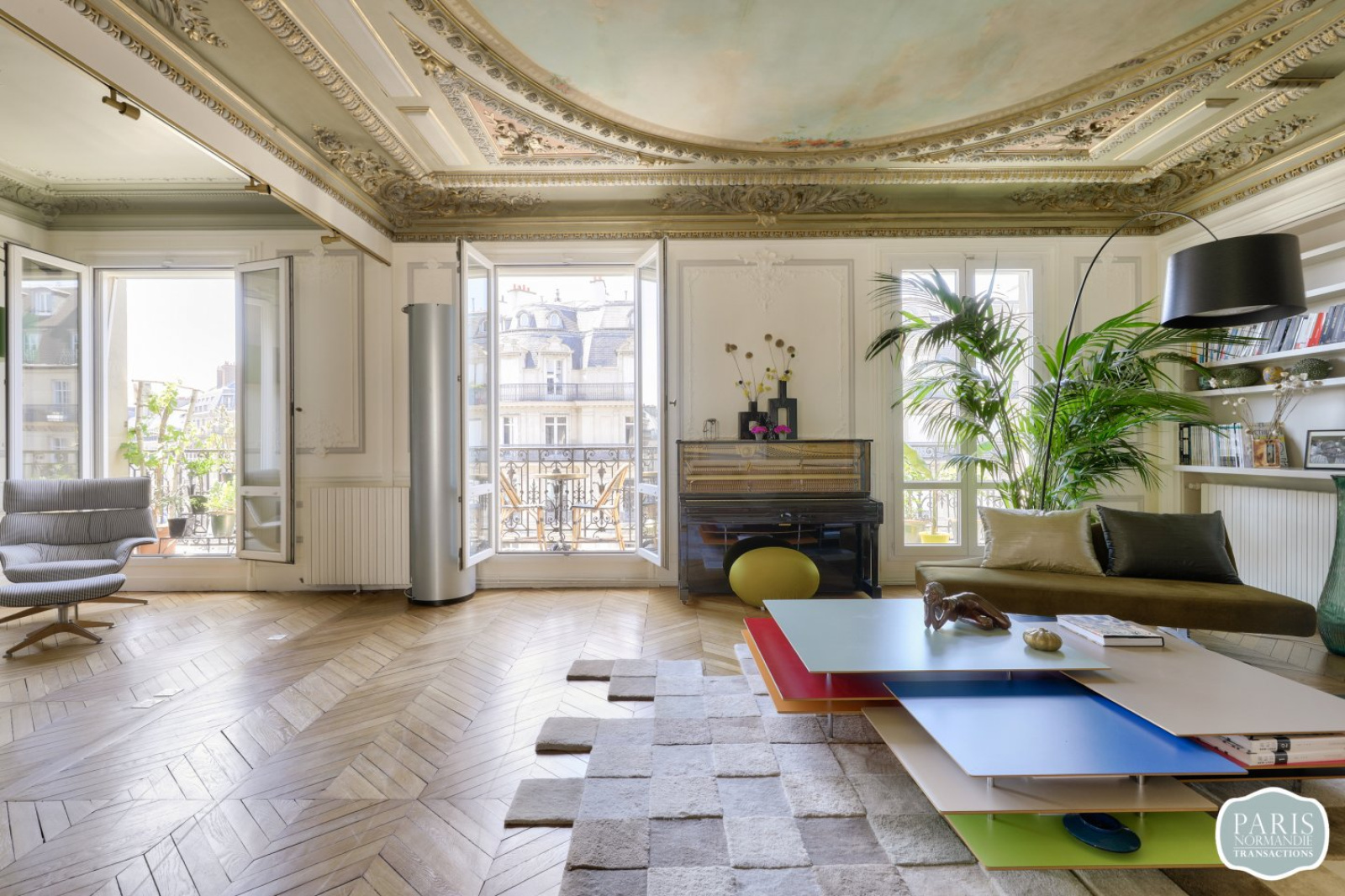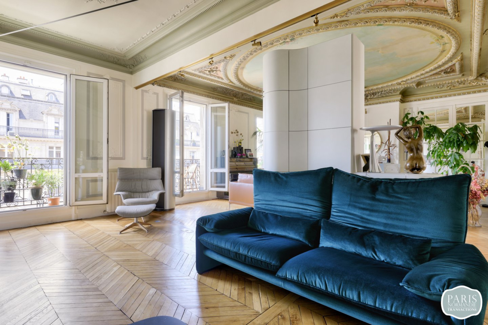 Il se compose d’une entrée, d’une double réception lumineuse de plus de 100m² traversante et sans vis-à-vis avec deux cheminées et des plafonds classés ouvrant sur un balcon filant de 8 mètres, une belle cuisine américaine totalement équipée, une salle à manger avec une grande cave à vins climatisée, d’un beau bureau avec un poêle prussien, de WC séparés, d’une suite parentale d’environ 55m² avec dressing Madame, dressing Monsieur et sa salle de bain en marbre, d’une belle chambre d’environ 14m² sur cour avec salle d’eau, d’une seconde suite de plus de 18m² avec salle d’eau et WC séparés pouvant être indépendante (2 accès) et d’une buanderie.