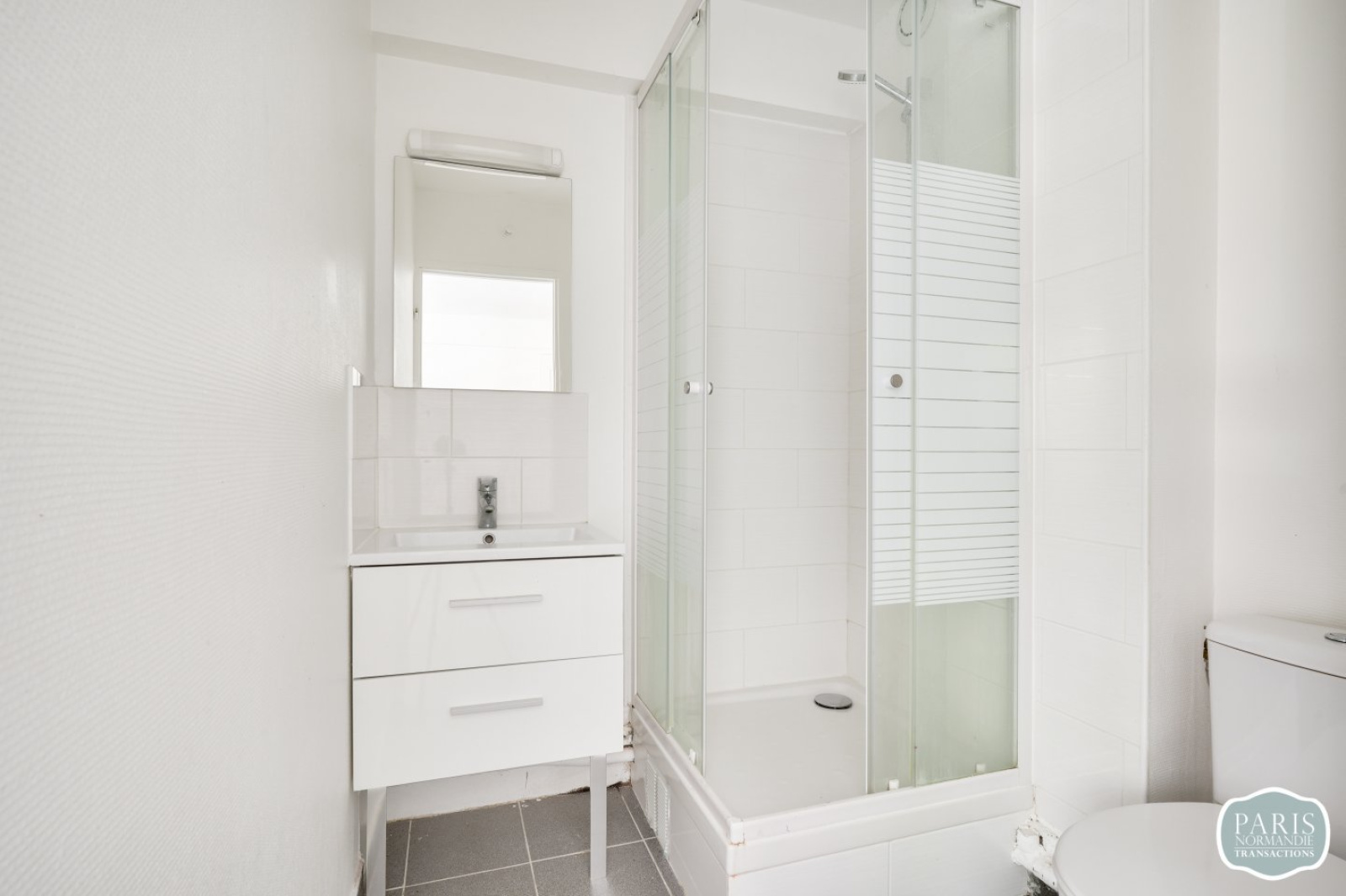 Il se compose en l’état d’une grande pièce à rafraichir avec deux larges fenêtres et un coin cuisine, une salle de douche avec WC et un grand espace de rangement.