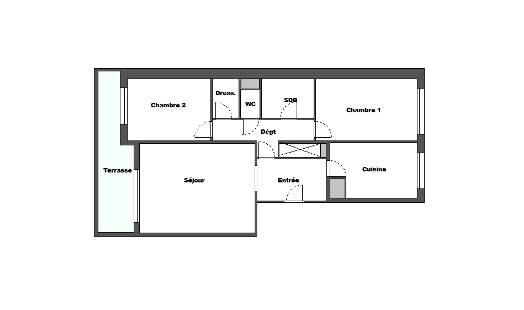 Très bon plan, pas de murs porteurs, nombreuses configurations possibles.