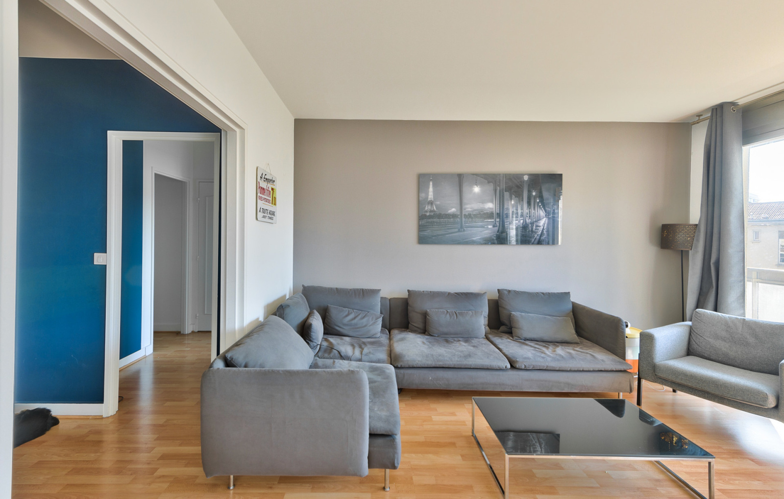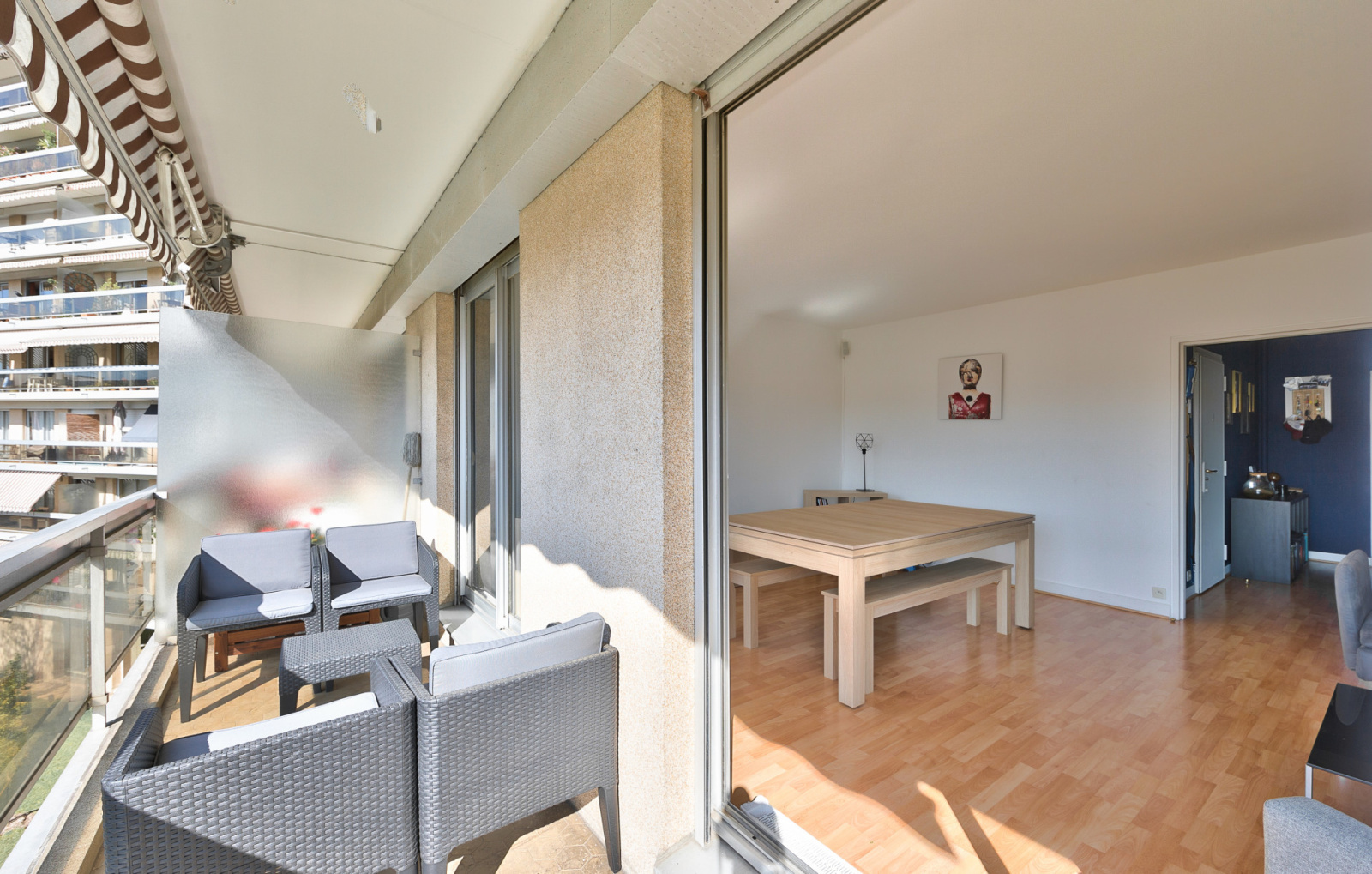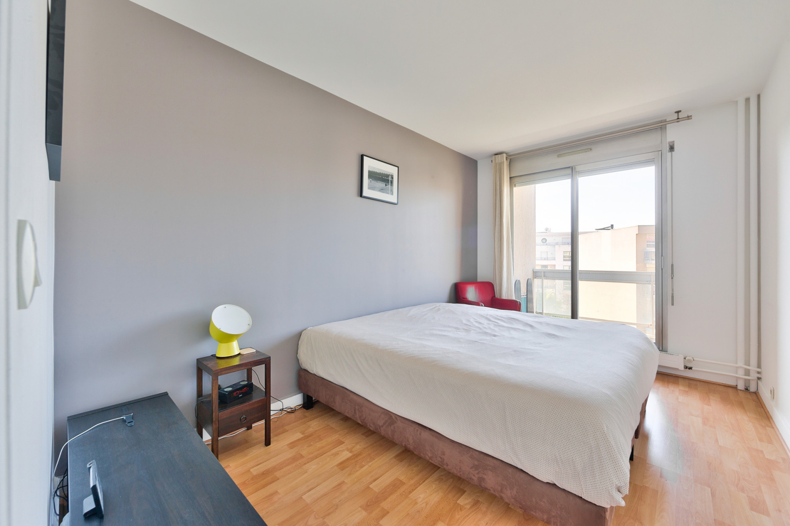 Il se compose d’une entrée, d’une grande pièce de réception de plus de 24m² donnant sur un balcon filant orienté plein Sud, d’une cuisine séparée, de deux grandes chambres (12,11m² et 11,37m²), d’un dressing, d’une salle de douche et de WC séparés.
