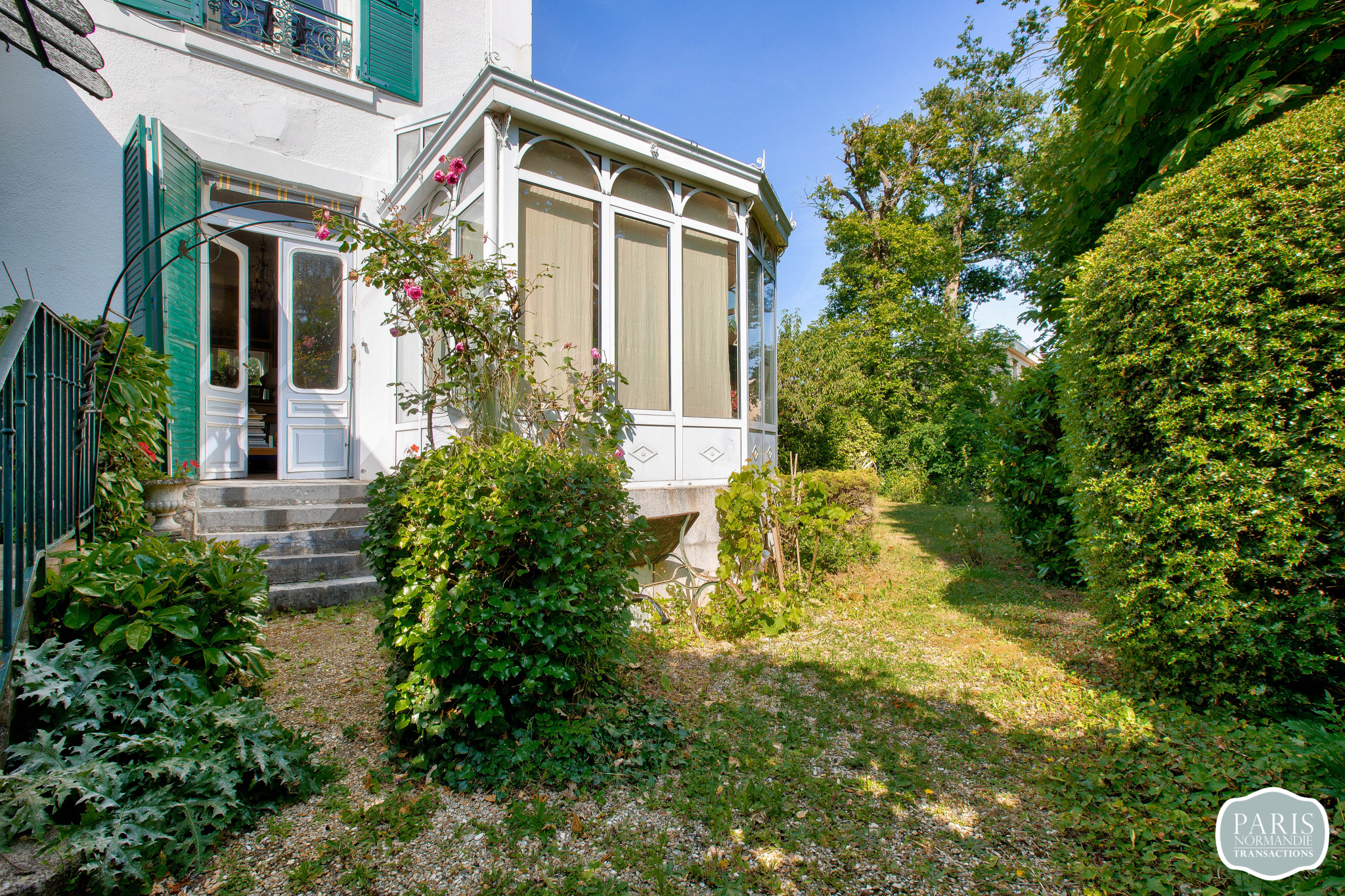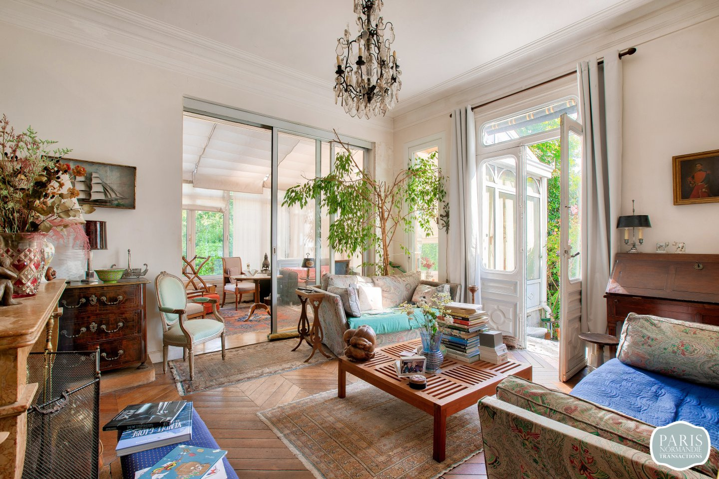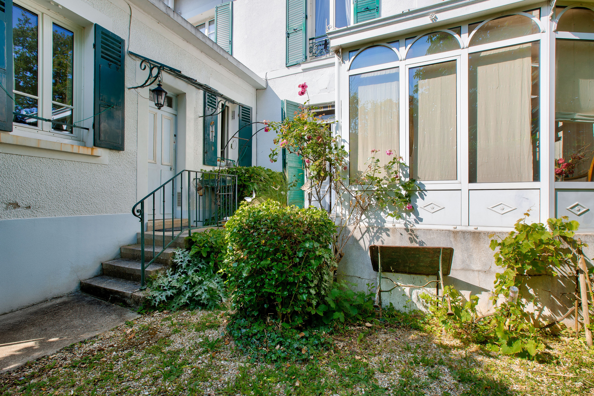 Non mitoyenne et sans vis à vis, elle se compose au rez-de-chaussée, d’une très belle entrée avec un escalier majestueux, d’une double réception lumineuse avec une cheminée dans chaque pièce, d’une véranda exposée Sud-Ouest et d’une cuisine dinatoire avec un accès direct au jardin.