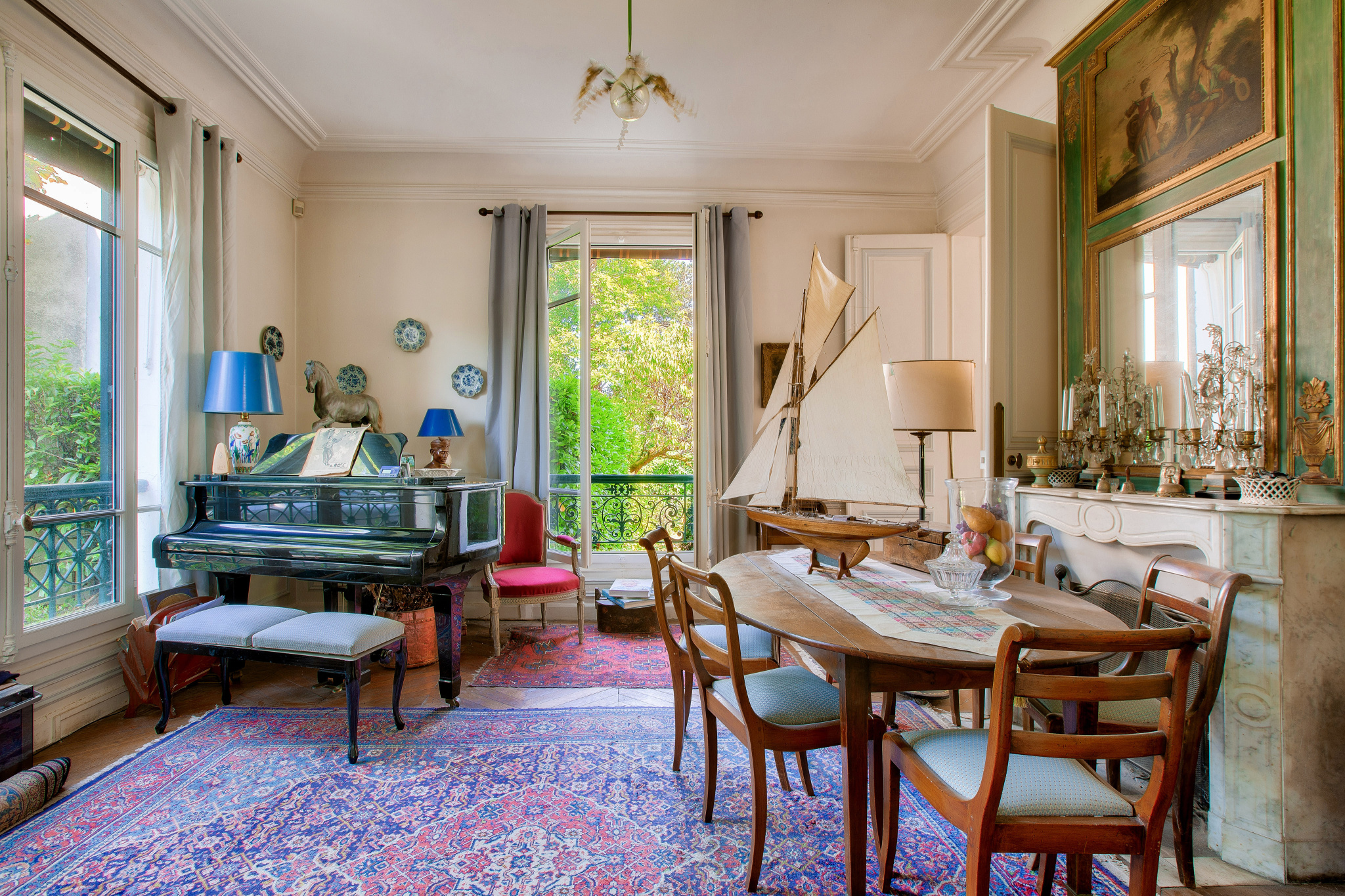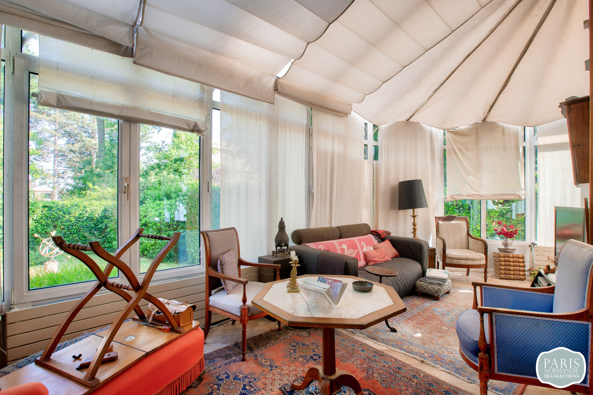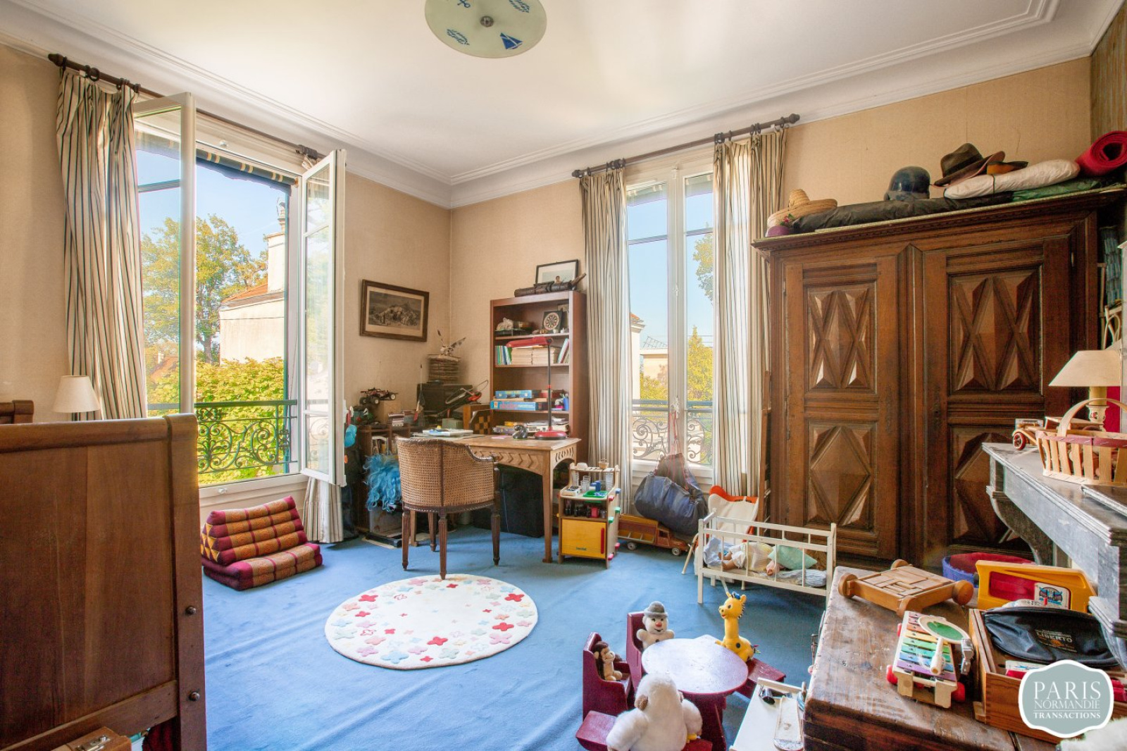 Non mitoyenne et sans vis à vis, elle se compose au rez-de-chaussée, d’une très belle entrée avec un escalier majestueux, d’une double réception lumineuse avec une cheminée dans chaque pièce, d’une véranda exposée Sud-Ouest et d’une cuisine dinatoire avec un accès direct au jardin.