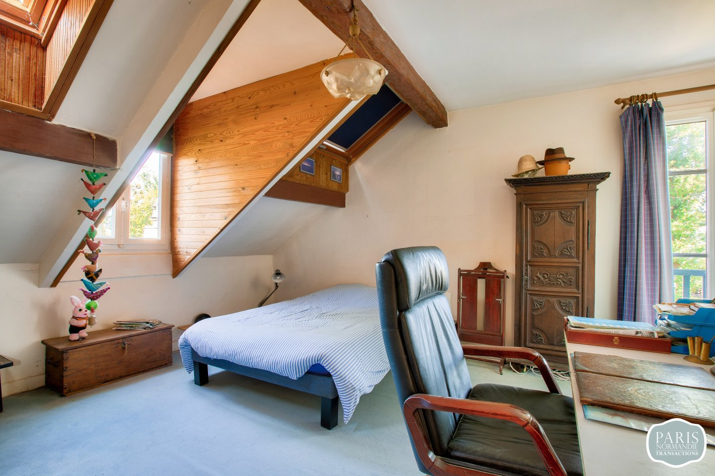 Un garage fermé de 21,6m² (aménagé en bureau) et un atelier de 22,5m² complètent ce bien rare à la vente.
