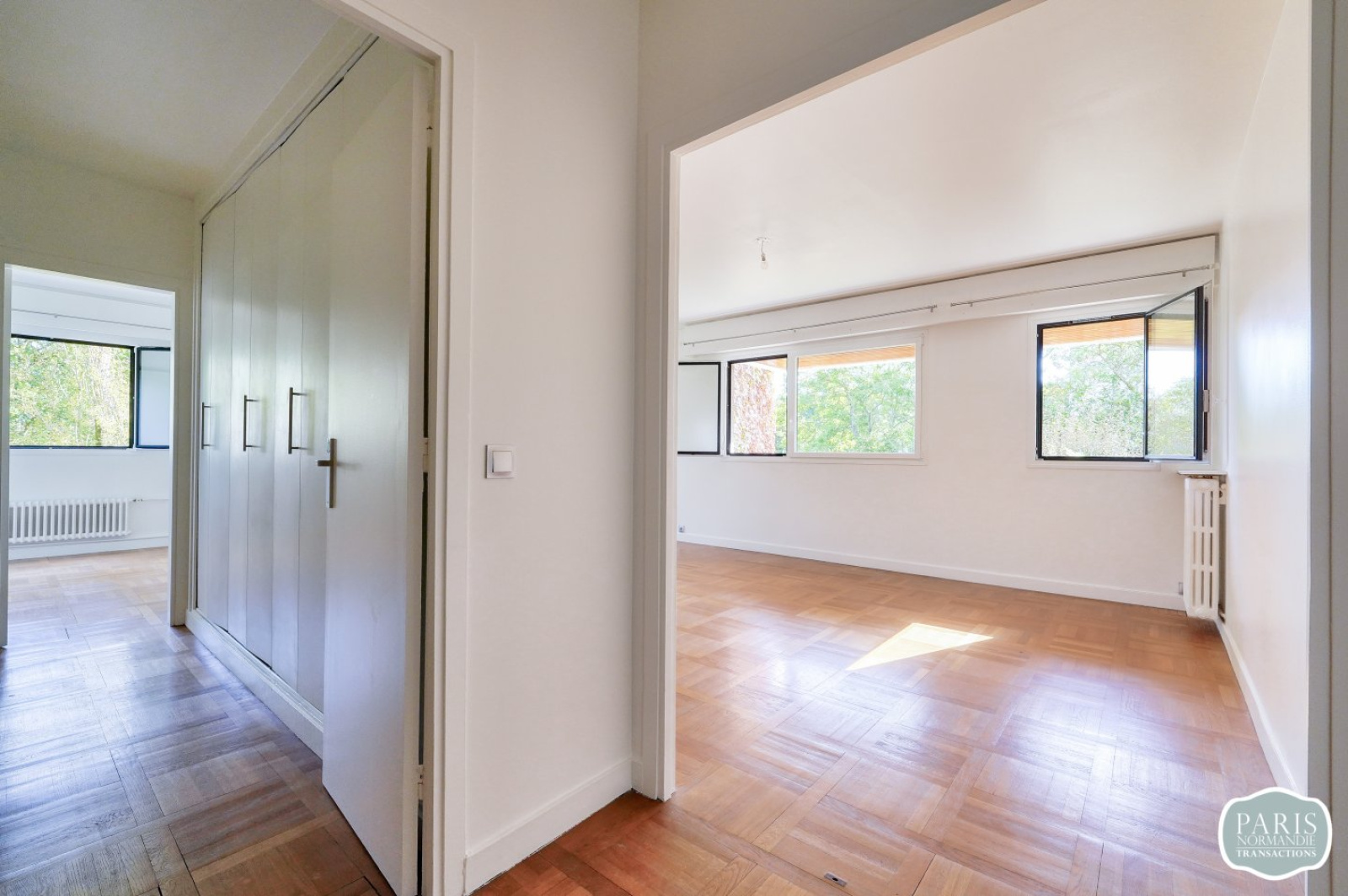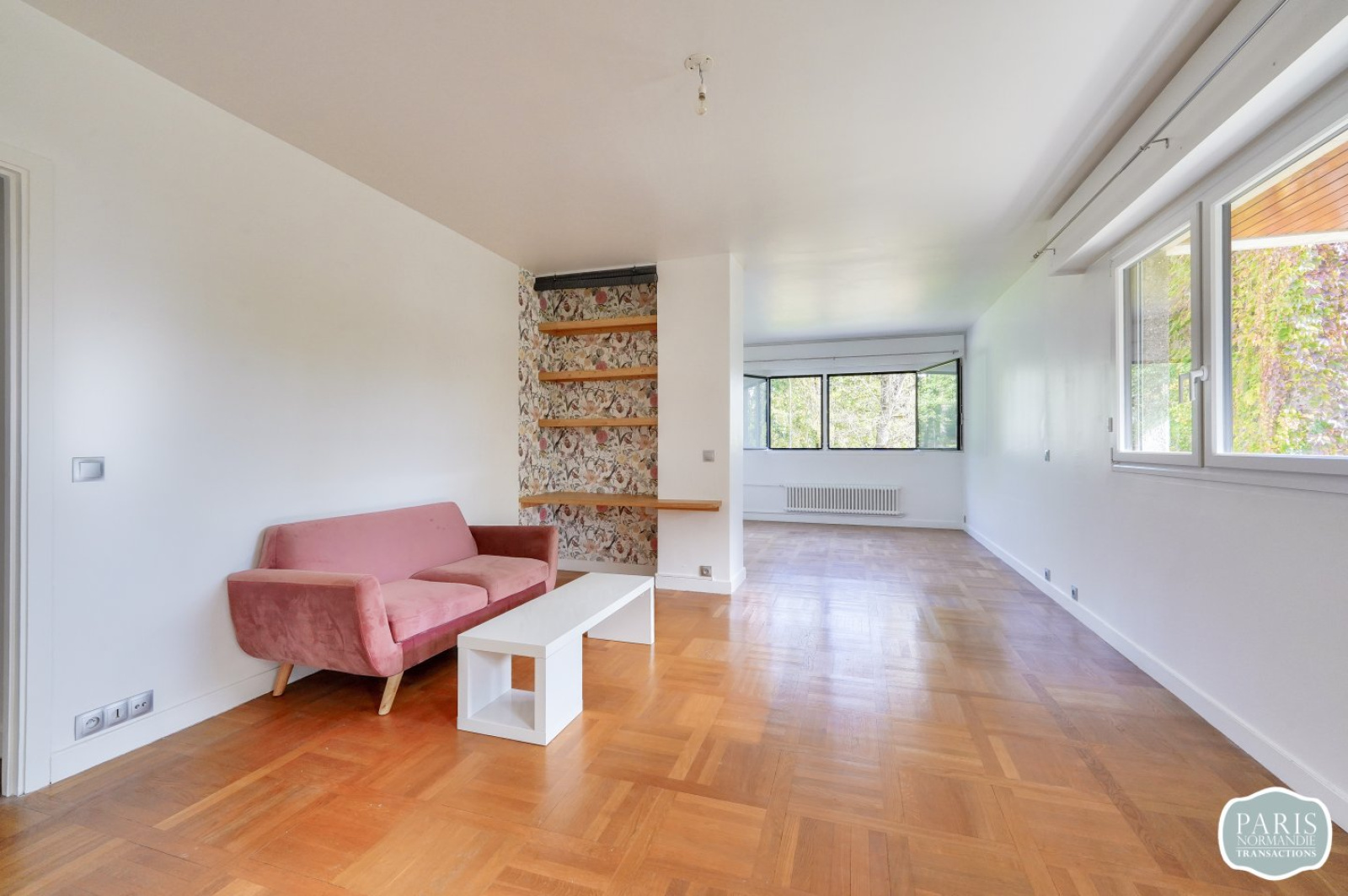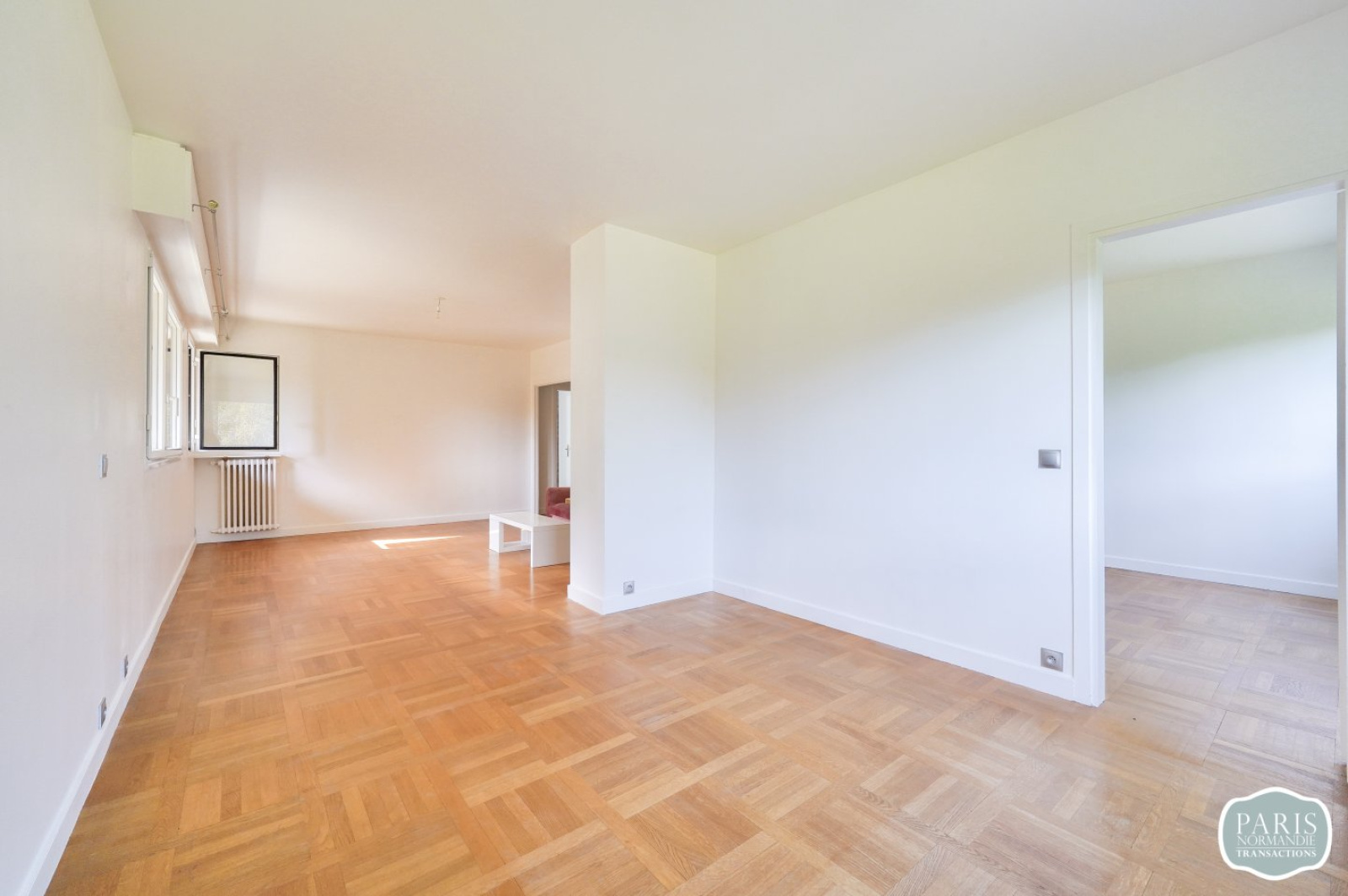 Nombreux aménagements possibles, notamment création d’une seconde chambre de 12m², tout en conservant une grande pièce de réception de 21m².