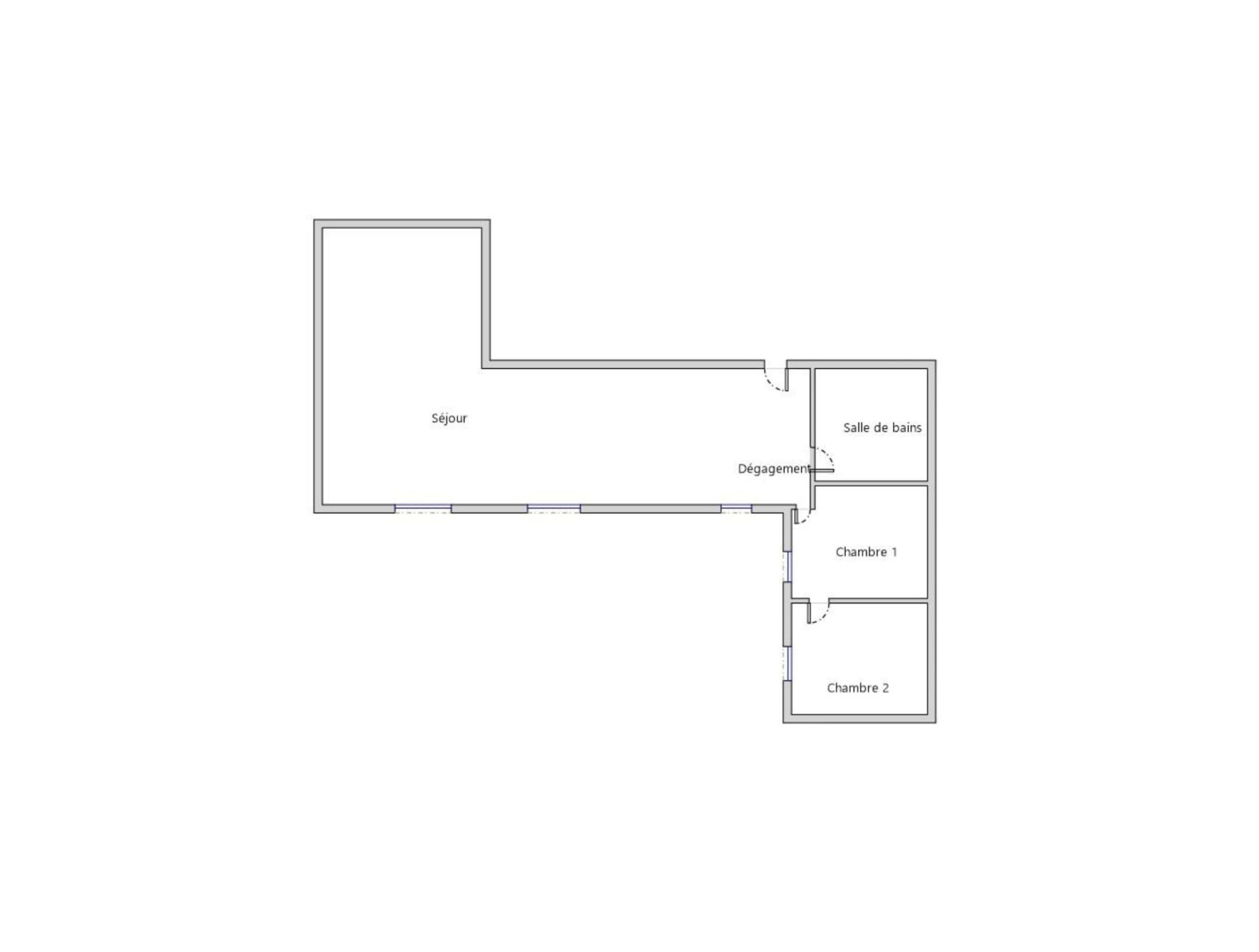 Il se compose d’une grande pièce de réception de plus de 40m² avec une cheminée et une cuisine américaine, de 2 chambres en enfilade et d’une salle de bains avec WC.