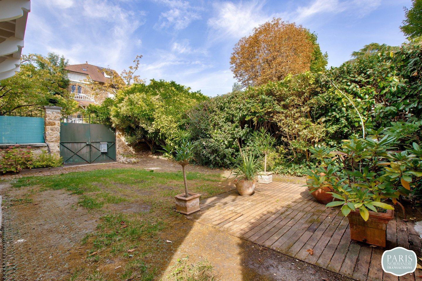 A deux pas de la Gare du Val d’Or, une très belle meulière ensoleillée et à rénover de 100m² donnant sur deux beaux jardins exposés Est et Ouest.