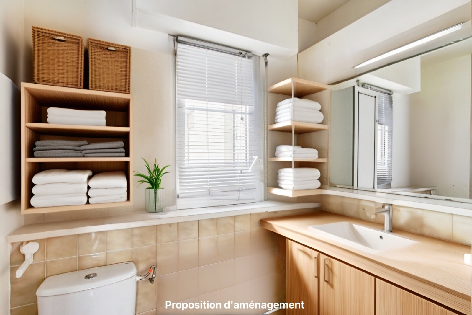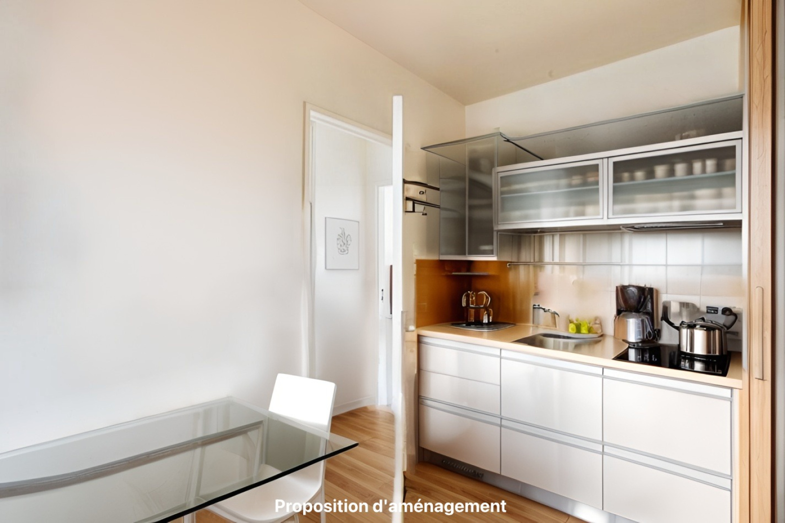 Nombreux aménagements possibles, notamment créer une pièce principale traversante d’environ 34m² avec une cuisine américaine.