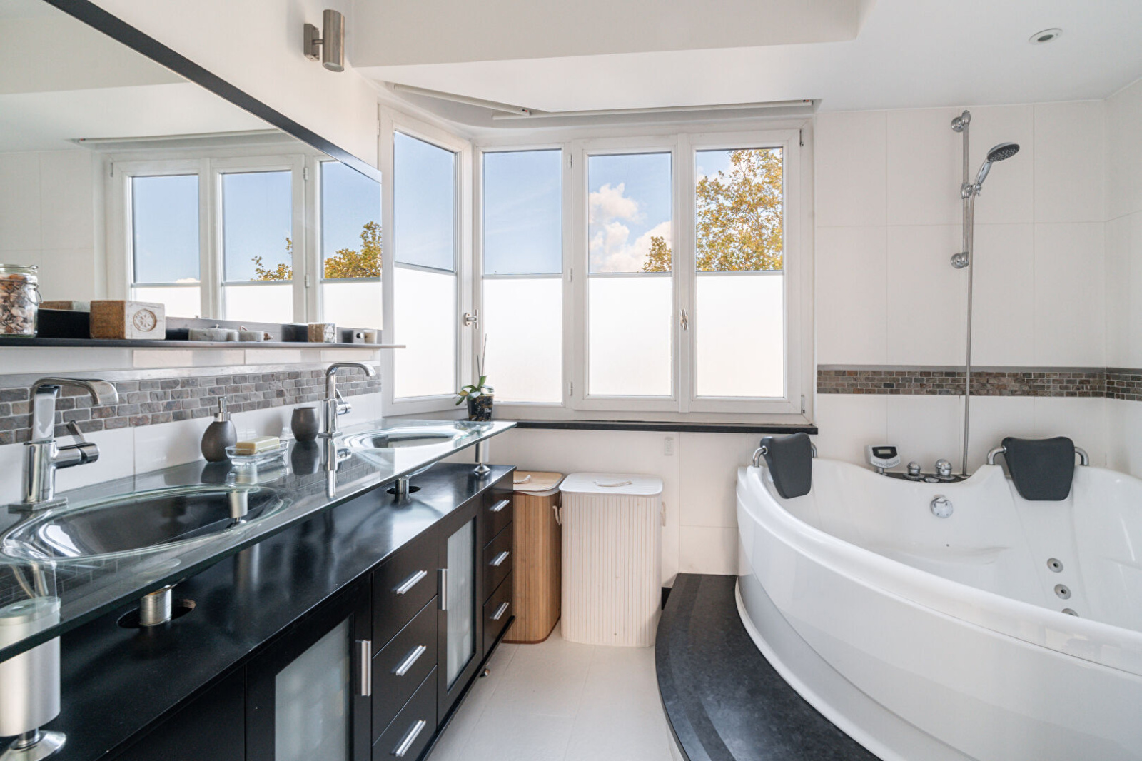 Les prestations sont nombreuses : domotique, climatisation réversible, système audio multi room, home cinéma, jeux de lumière, stores électriques, arrosage automatique sur le Rooftop végétalisé... chaque détail a été pensé pour un confort maximum et une qualité de vie en famille au quotidien.